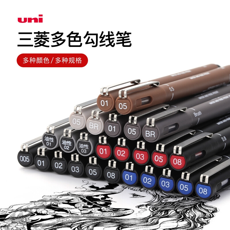 三菱(uni)0.1mm水性绘图针管笔 PIN-200美术设计描边笔勾线笔 蓝色 计价单位:支