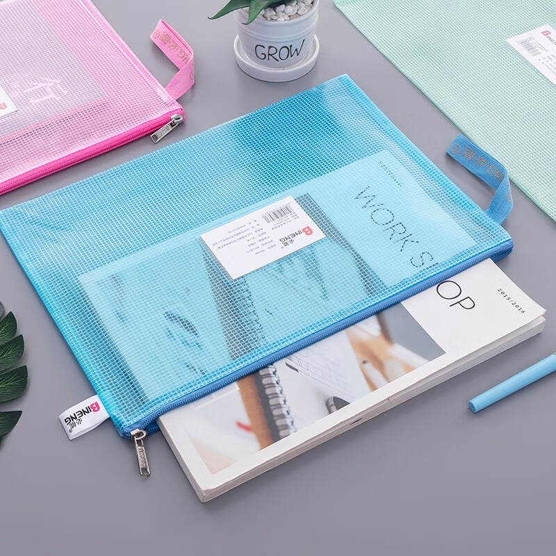 必能(BINENG)BN-899加厚A3防水网格拉链袋办公文件袋资料收纳袋学生文具袋 颜色随机