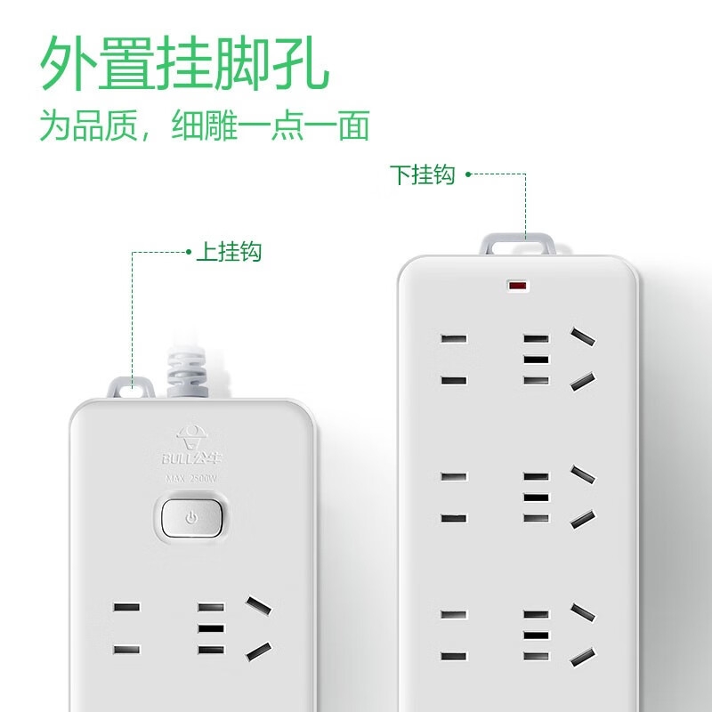 公牛(BULL)新国标插座 插线板/插排/排插/接线板/拖线板 8位总控全长3米 GN-403