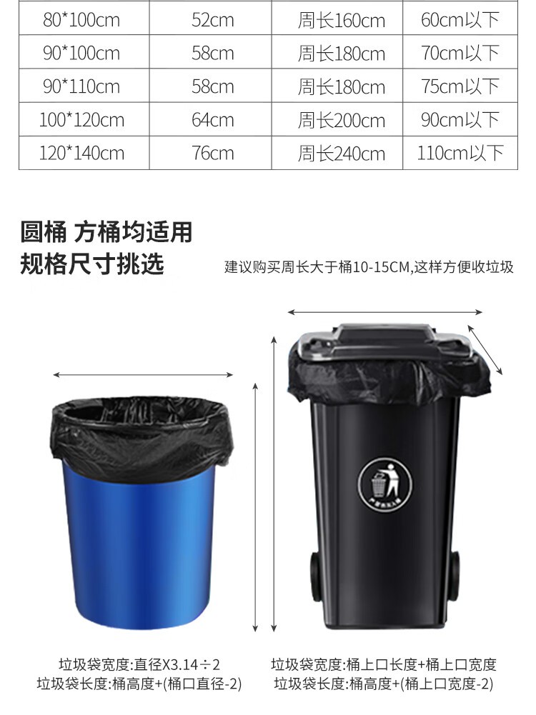 洁维嘉 JL1120黑色平口垃圾袋80*100cm 特厚新料