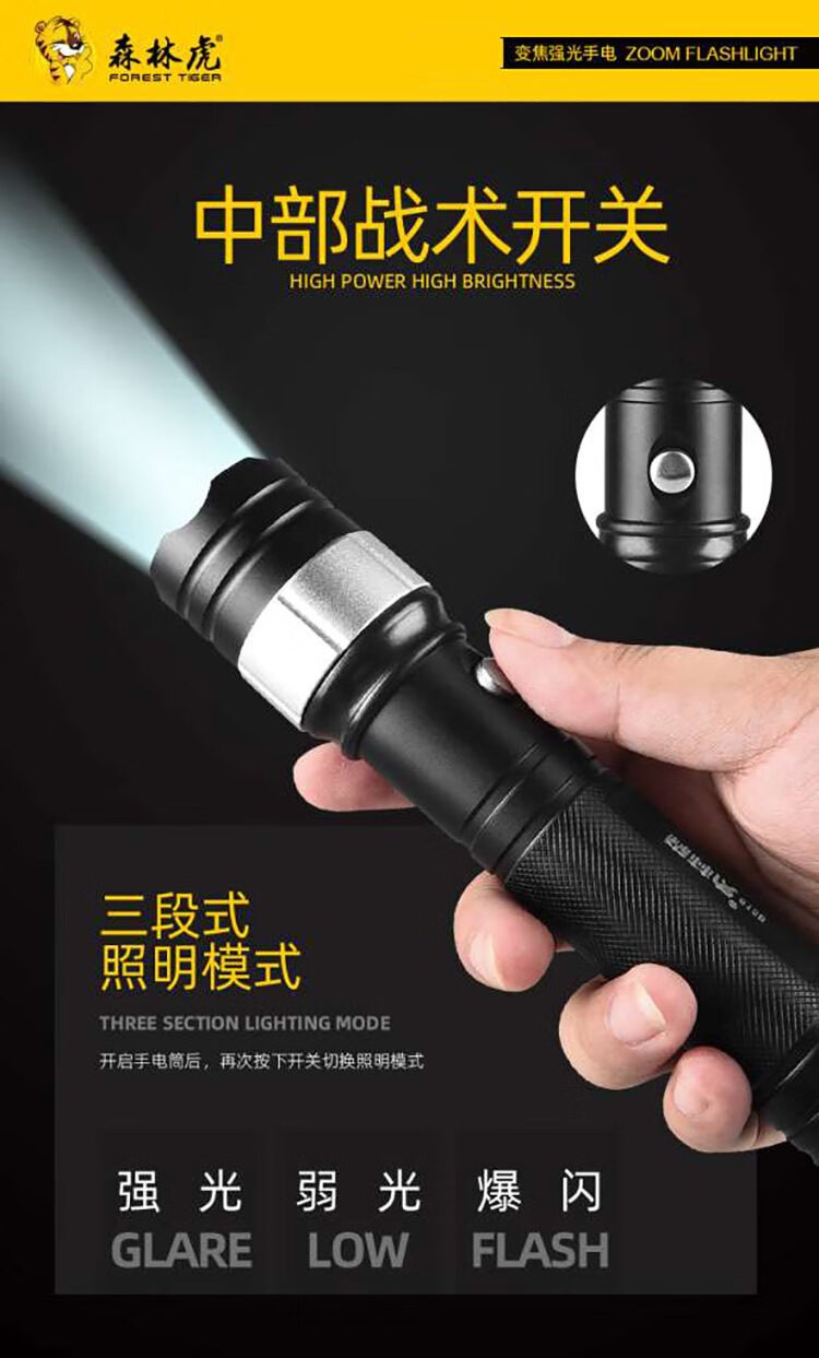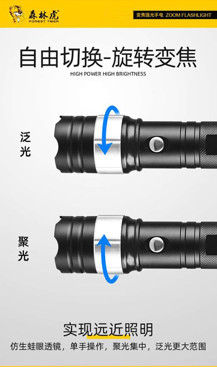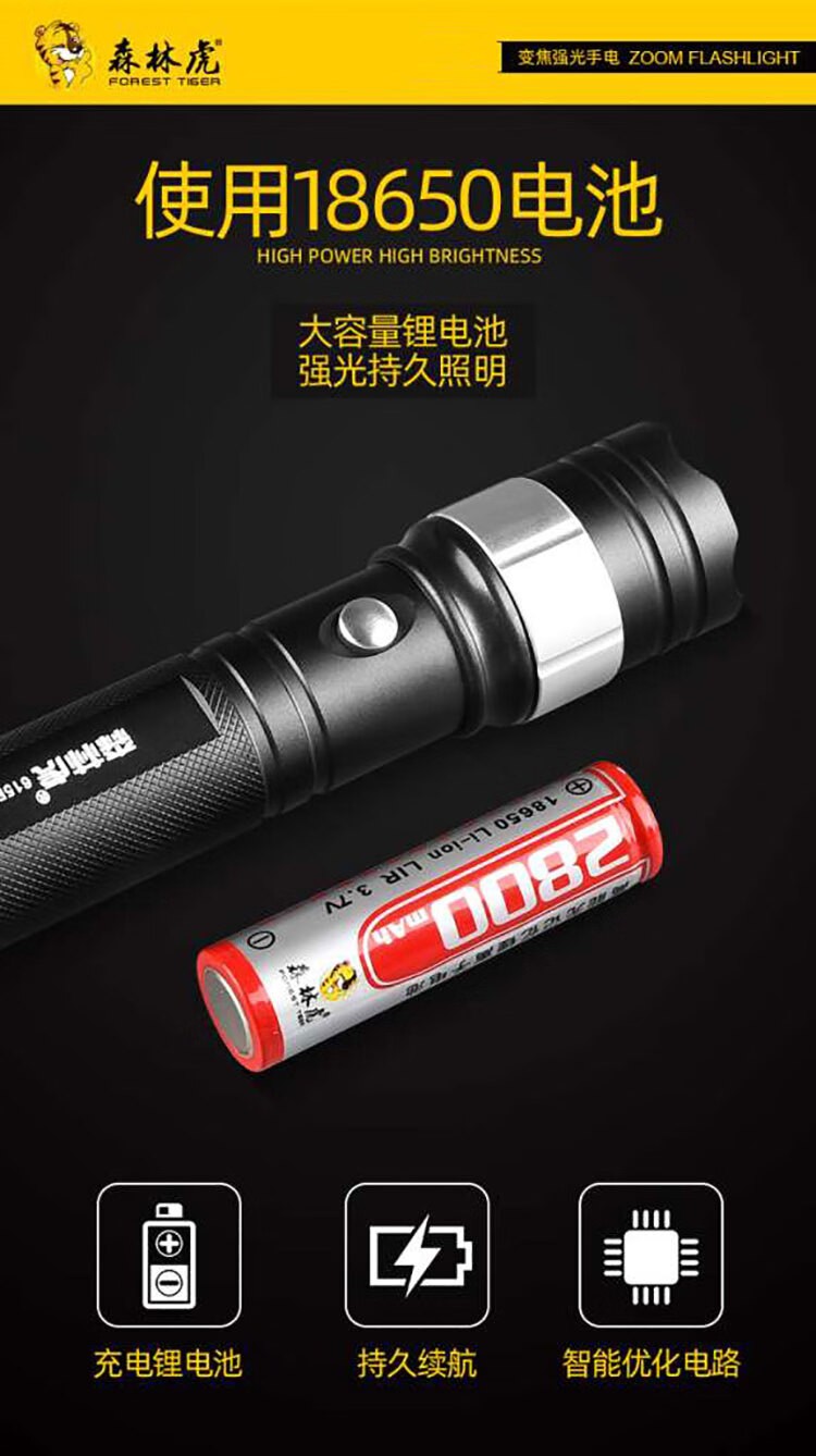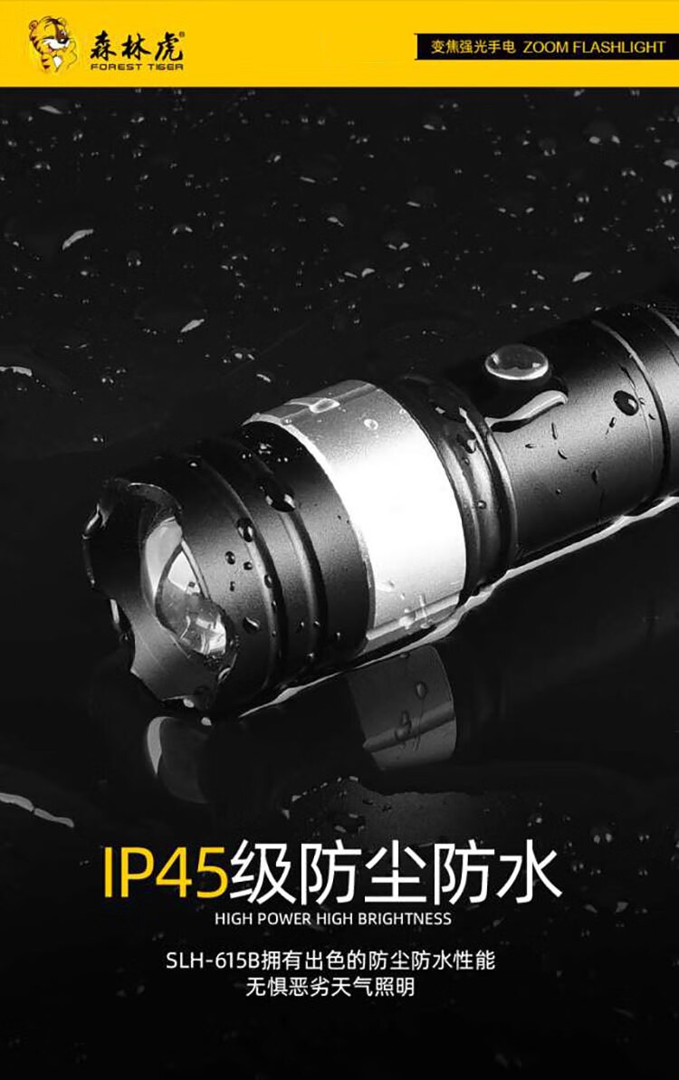 森林虎SLH-H615B旋转调焦距强光电筒153MM