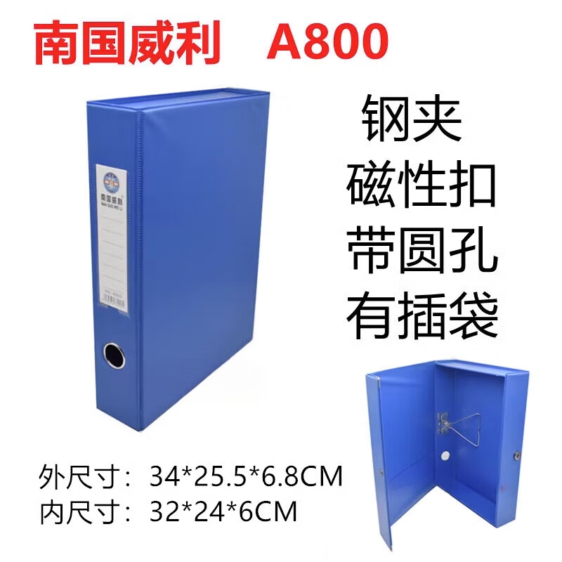 威利A800档案盒7cm 侧夹磁扣 天蓝色