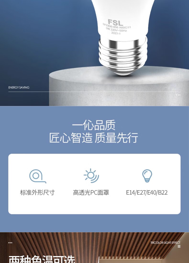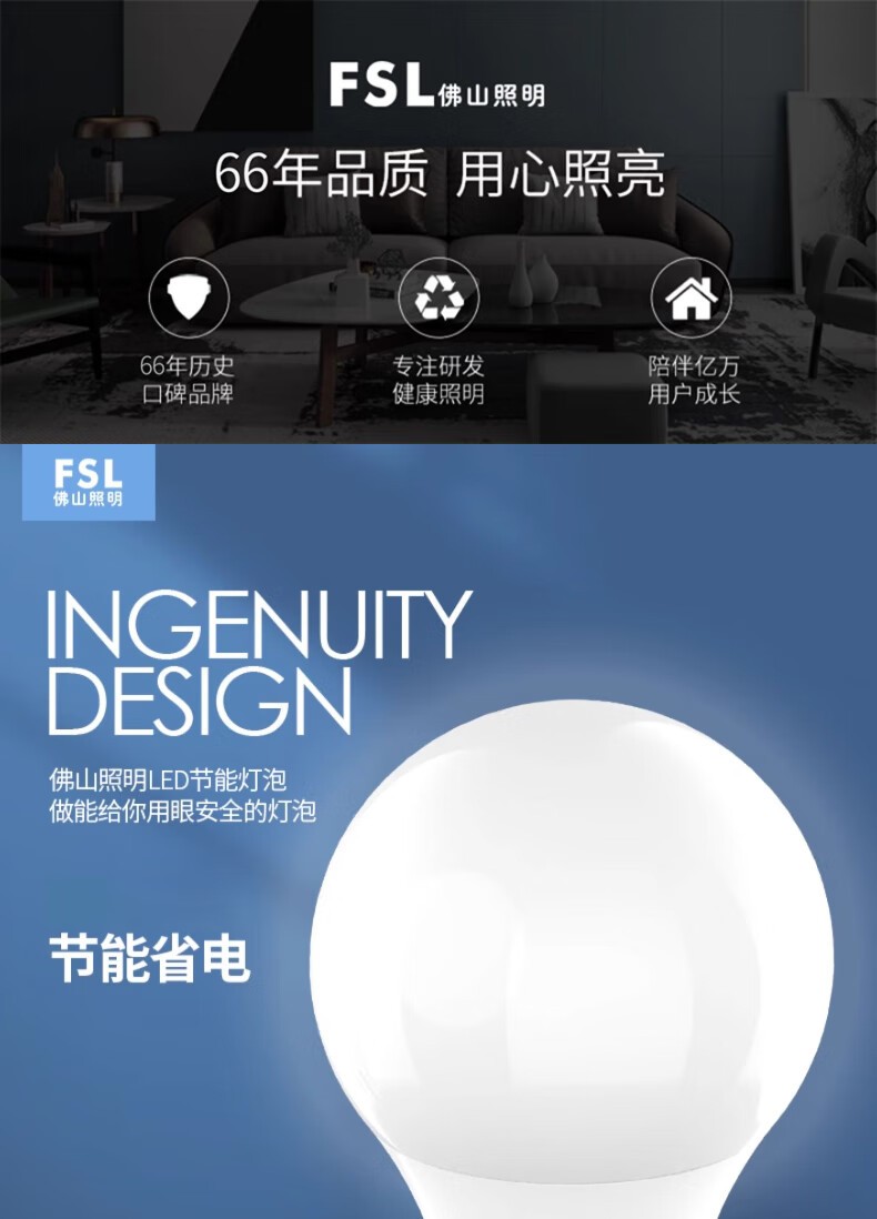佛山照明E27 LED A60灯泡6500K 10w