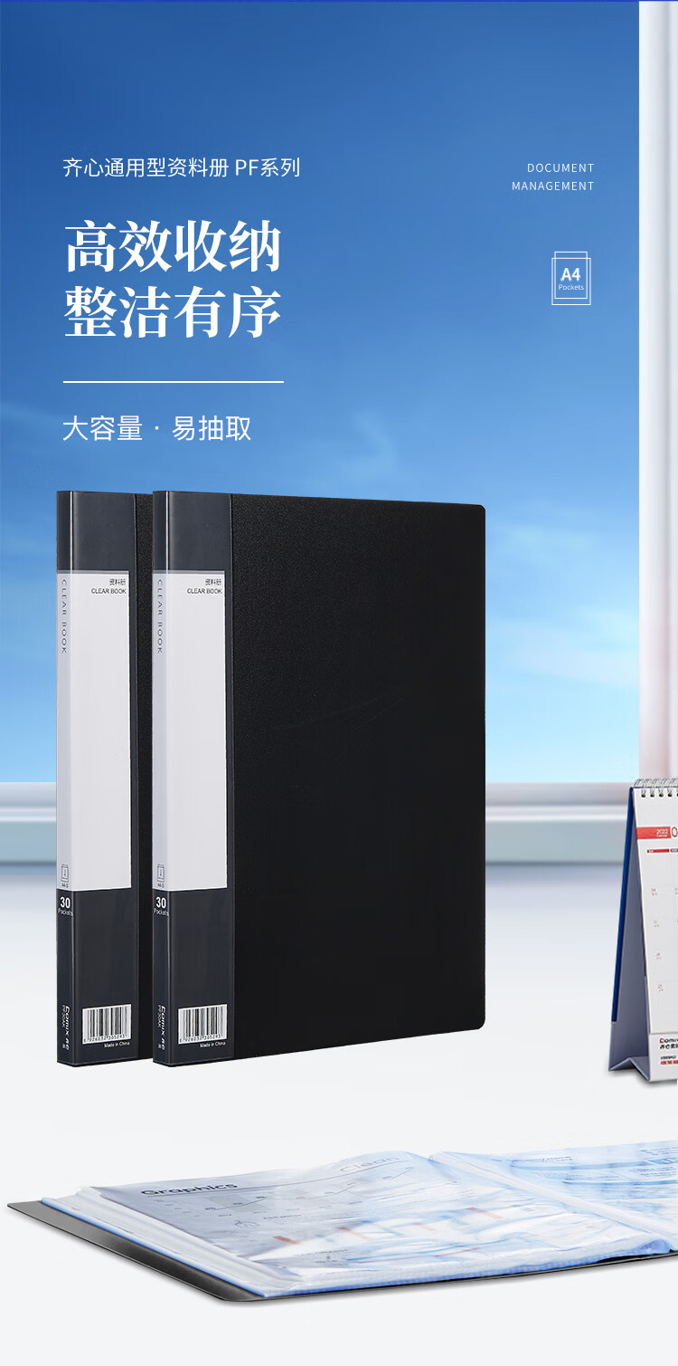 齐心 NF30AK资料册A4纸商务办公学生文件档 A4 30页内袋 黑色