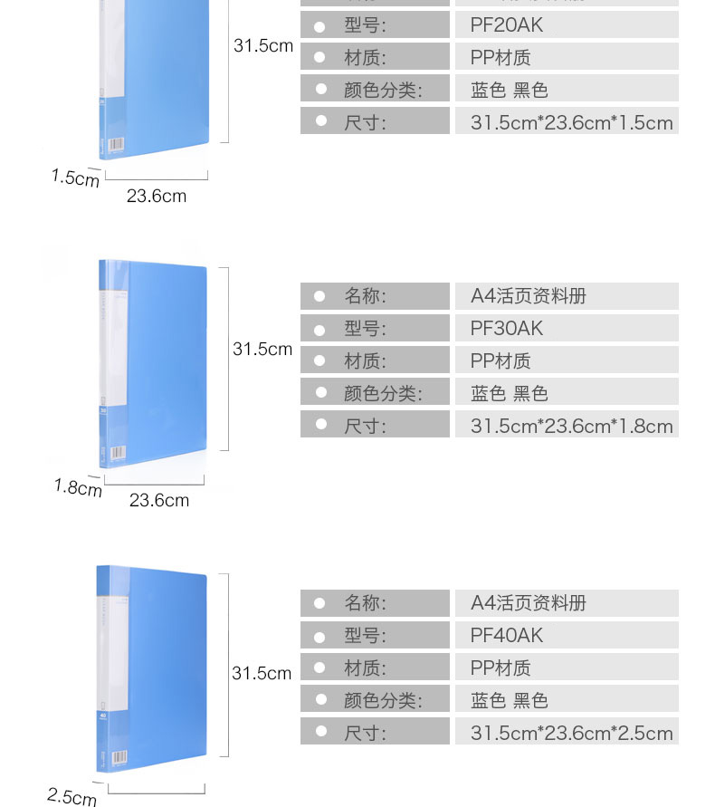 齐心 PF40AK 透明插页袋资料册A4 40页内袋 黑色