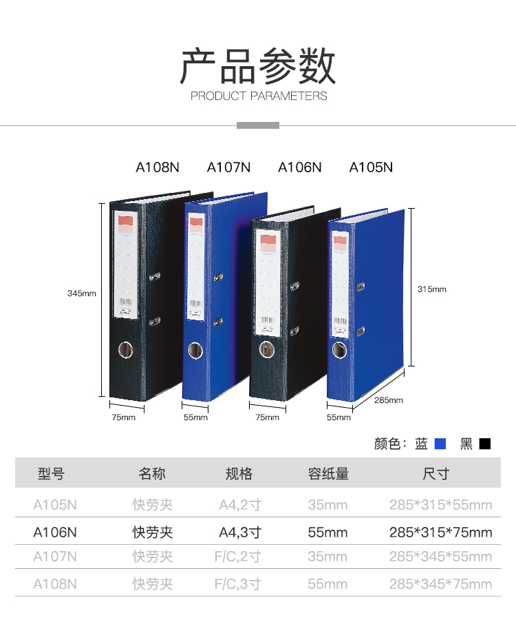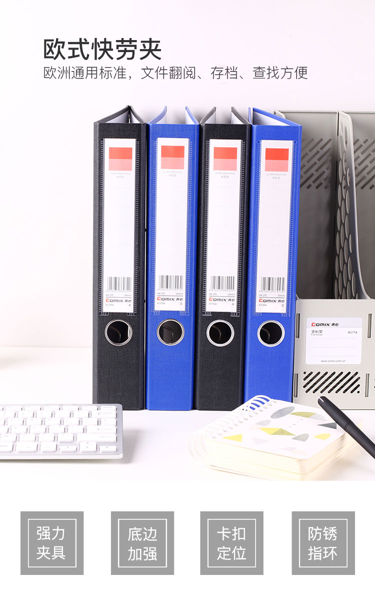 齐心(Comix) 2寸F/C快劳夹/文件夹背宽55mm容纸宽度35mm 蓝色A107N