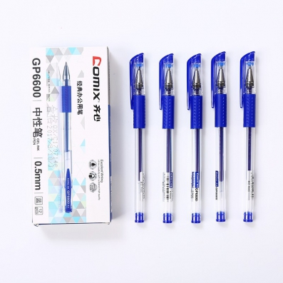 齐心/COMIX 经典子弹头办公中性笔学生办公用0.5mm签字笔水笔 考试签名笔 GP6600 蓝色