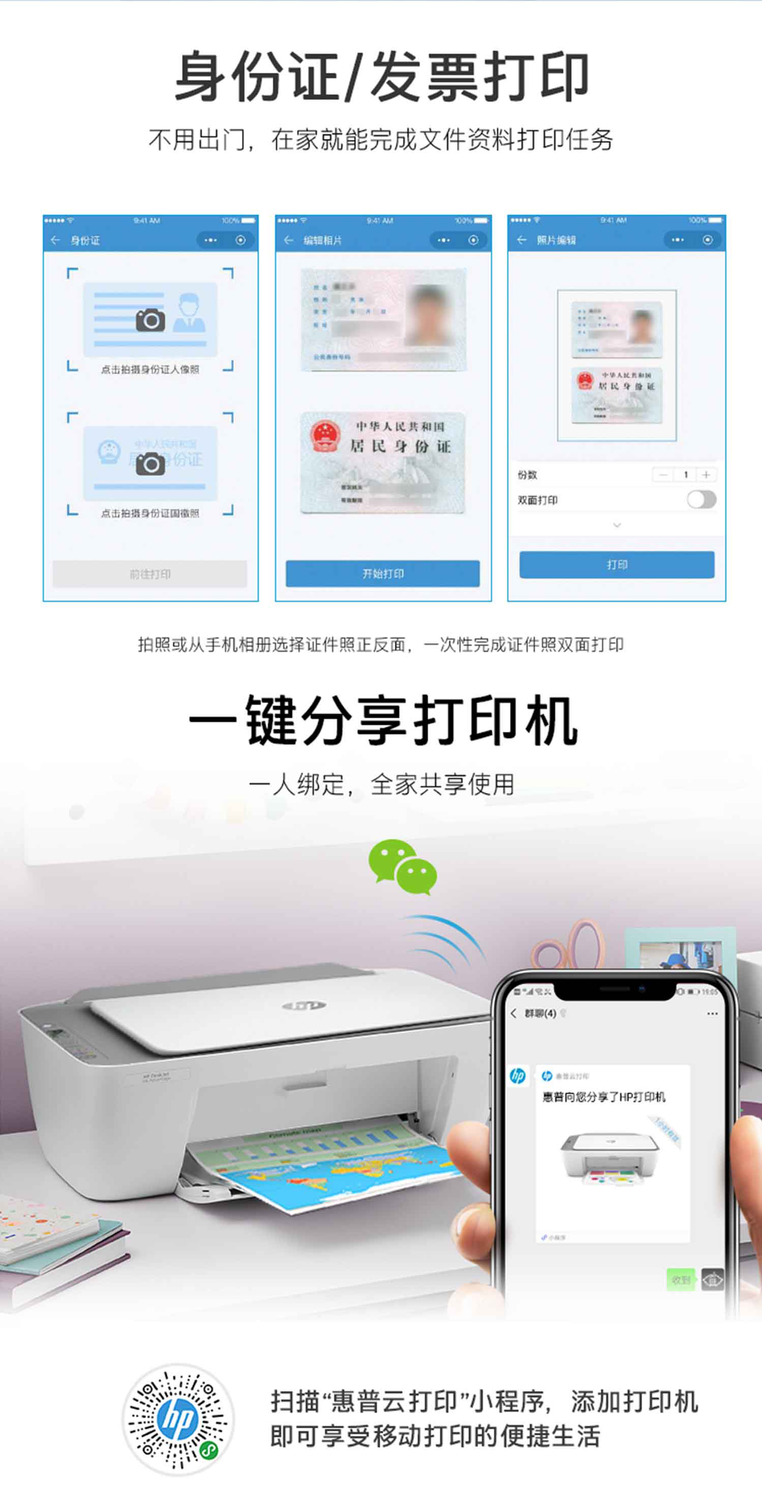 惠普(HP)2721 A4彩色喷墨无线打印一体机办公家用 打印 扫描 复印