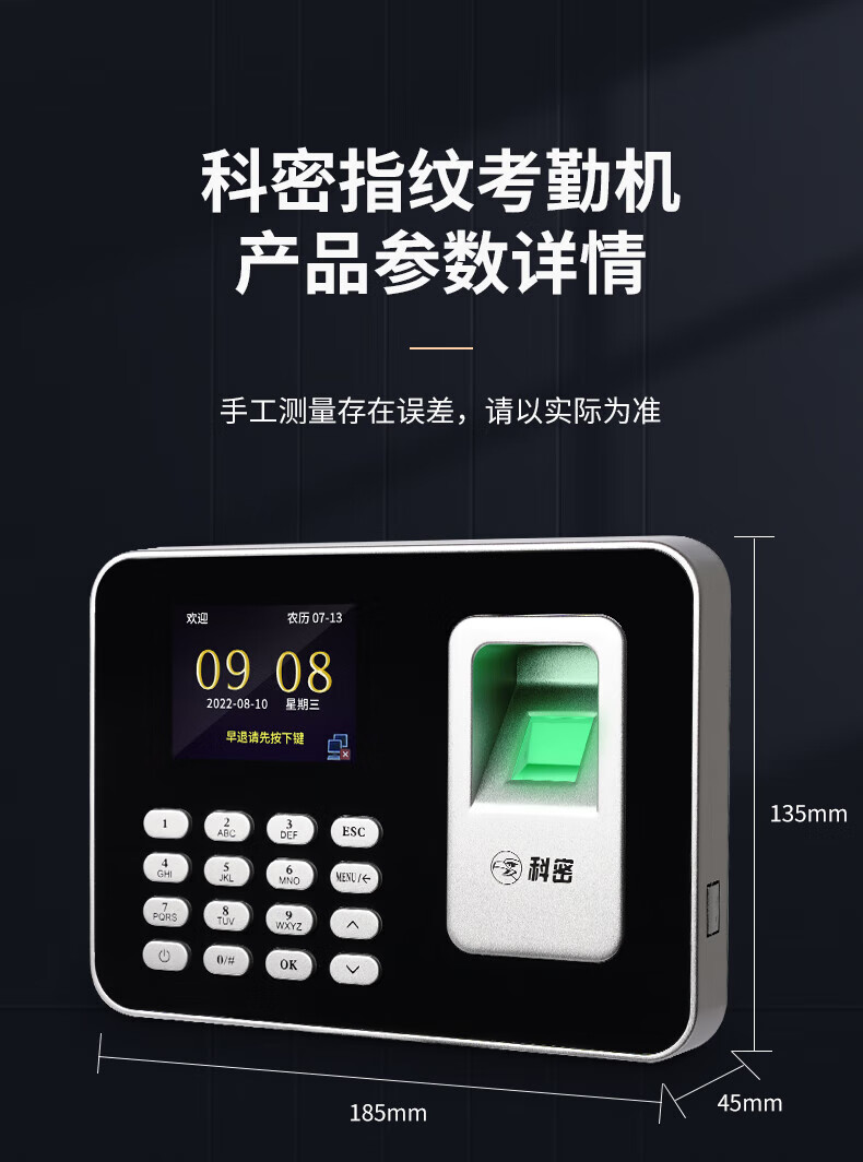 科密指纹识别考勤机免软件彩屏指纹考勤机打卡机卡钟自动生成报表K300A 彩屏指纹智能平台2000指纹