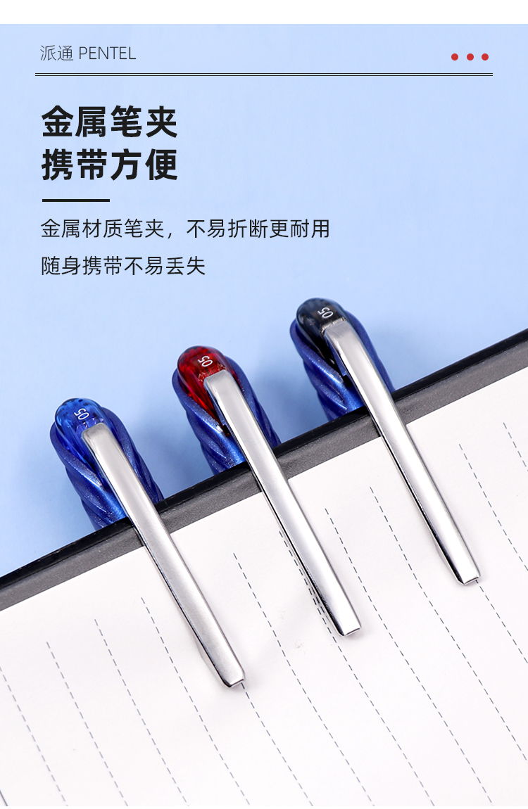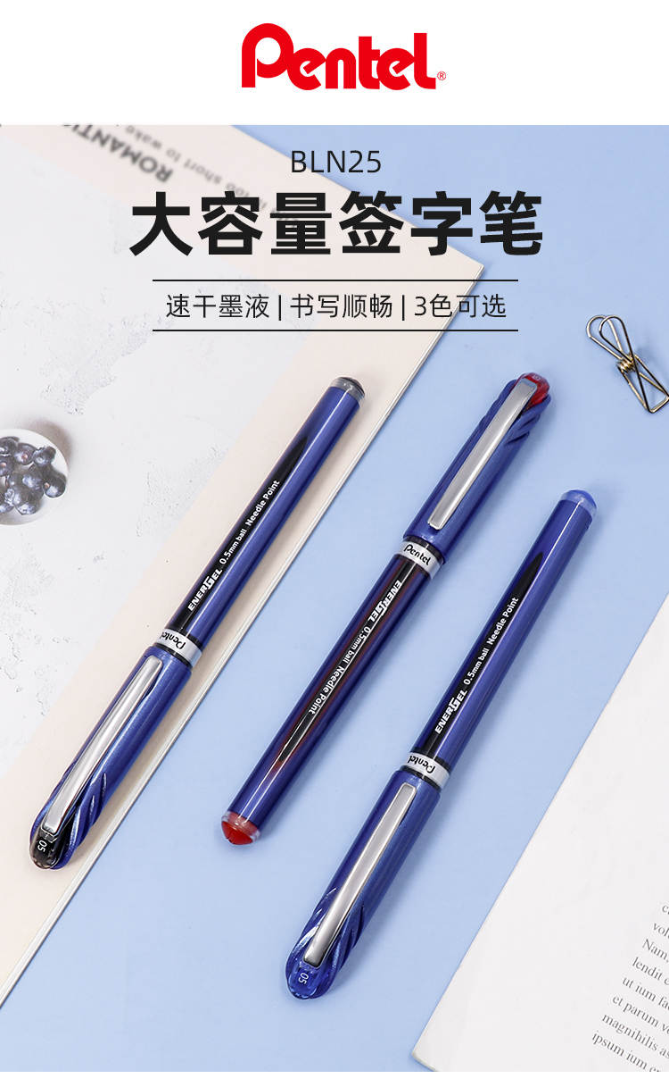 日本Pentel派通BLN25中性笔学生用考试速干水笔0.5大容量签字笔 红色 计价单位:支