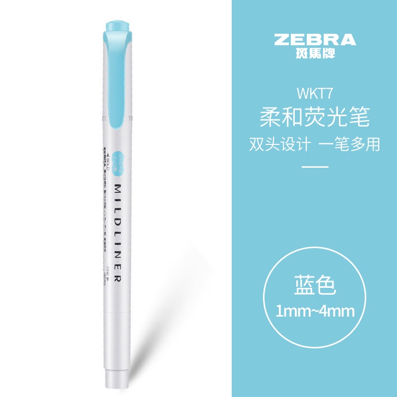 斑马牌 (ZEBRA)双头柔和荧光笔 mildliner系列单色划线记号笔 学生标记笔 WKT7 柔和蓝