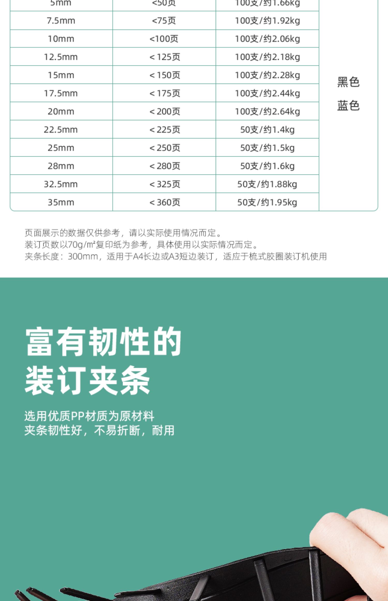 德仕通 装订夹条7.5mm黑色/蓝色塑料十孔夹条压条10孔装订条100支