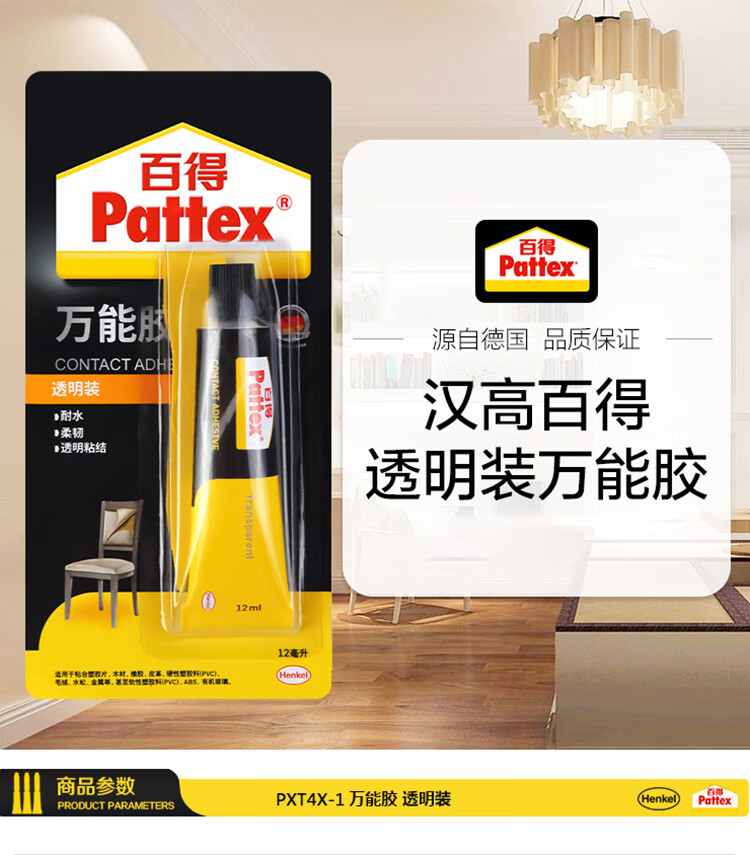 汉高百得(Pattex)超能胶水 修单鞋胶水多用途胶水强力粘合透明装 PXT4X-1 12ml/支