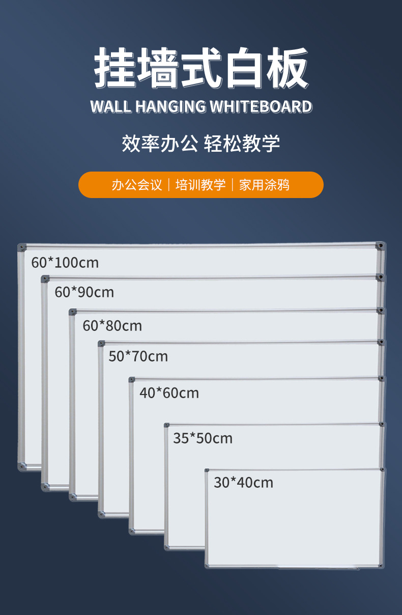 德仕通 磁性白板写字板挂式教学黑板办公会议室家用黑板可擦写 30x40cm