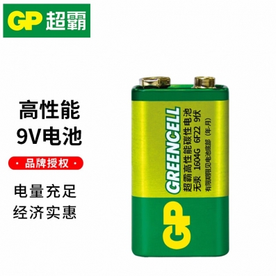超霸(GP) 9V九伏1604G 6F22方形碳性电池烟雾报警器电池万用表话筒扩音器吉他等电池 9V电池1节(绿)
