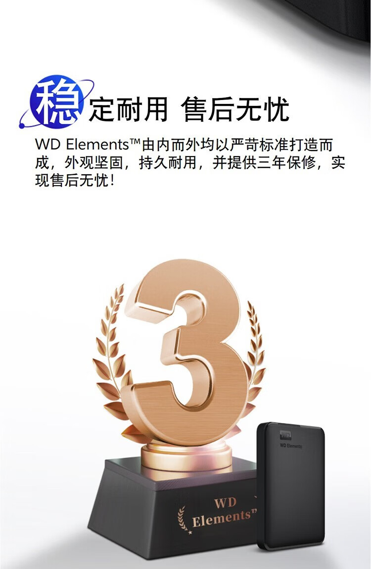 西部数据(WD)移动硬盘 USB3.0 Elements新元素系列2.5英寸机械存储 高速传输 便携 【经典元素】高速传输 【2TB】