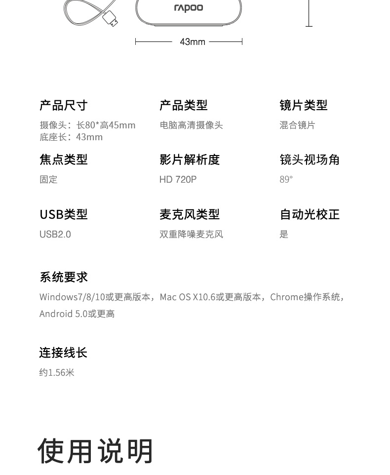 雷柏C200usb外置摄像头高清带麦克风电脑台式笔记本复试网课专用
