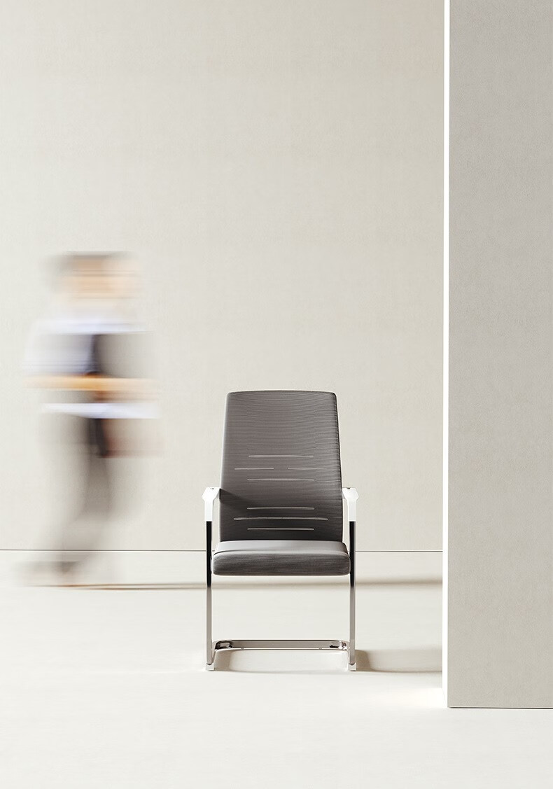 商务办公椅弓字形椅简约时尚职员会议网布椅办公椅 黑框黑网