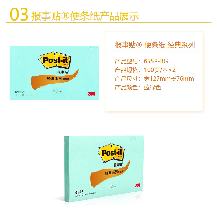 3M 655 经典系列便利贴 蓝绿色 76*127mm