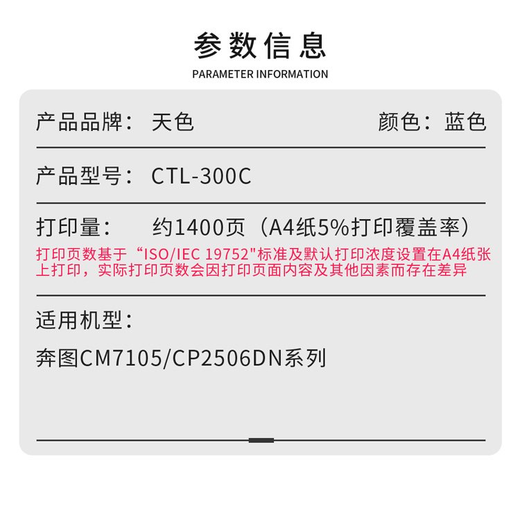 天色(1400页)CTL-300 蓝色 标准量粉盒适用奔图CM7105DN硒鼓PANTUM CP2506DN PLUS彩色打印机墨盒粉盒 蓝色