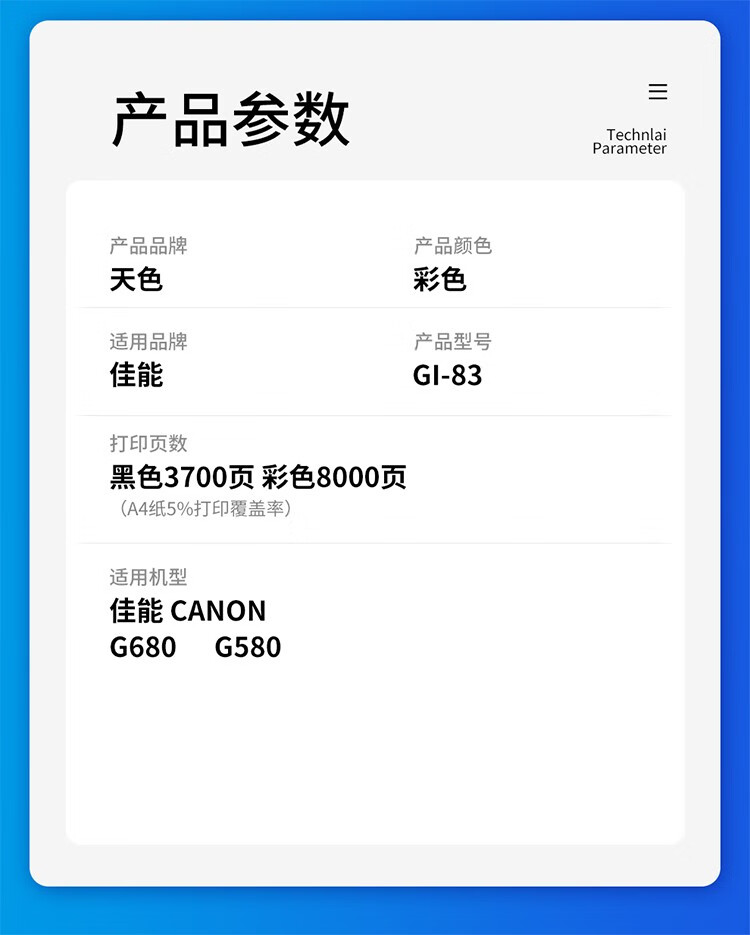 天色(8000页)GI-83墨水 灰色适用佳能GI-83墨水G680、G580墨盒打印机耗材 【8000页】灰色