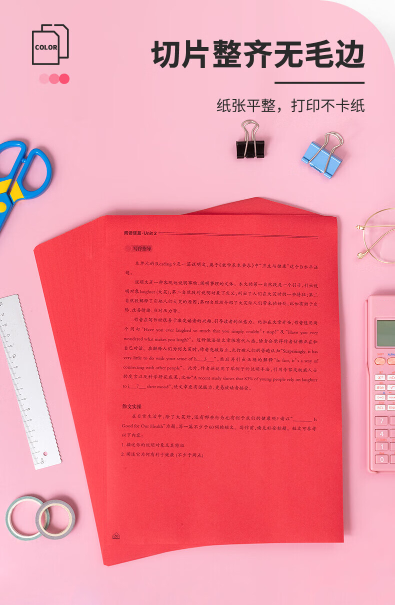 德仕通 A4/80g彩色复印纸 500张/包 红色 DIY手工折纸彩色打印纸 儿童手工纸 卡纸