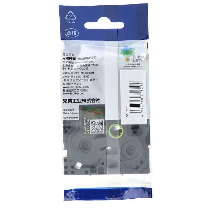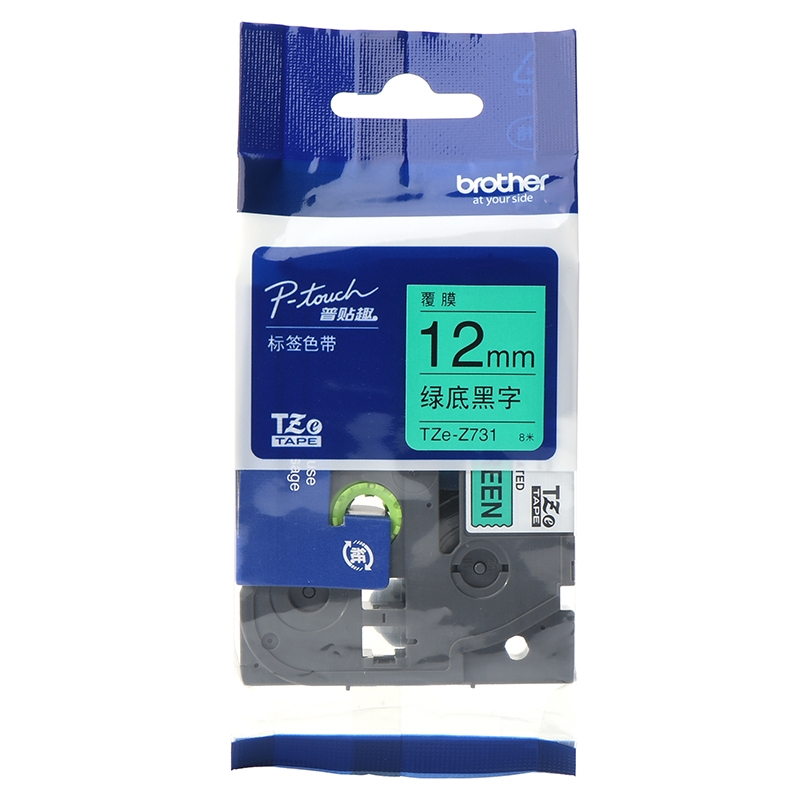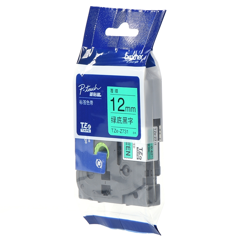 兄弟(brother) TZe-731 12mm绿底黑字标签色带