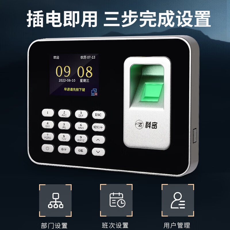 科密指纹识别考勤机免软件彩屏指纹考勤机打卡机卡钟自动生成报表K300A 彩屏指纹智能平台2000指纹