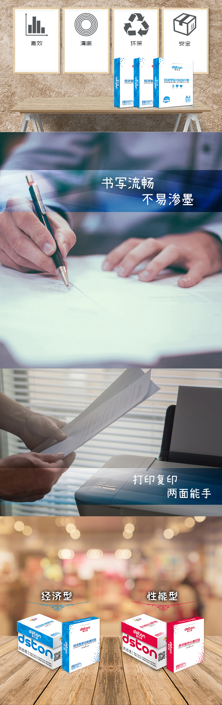 德仕通 单包蓝装A4/80g 复印纸打印纸 500张/包(单包)