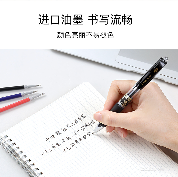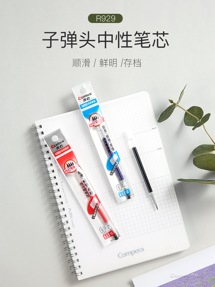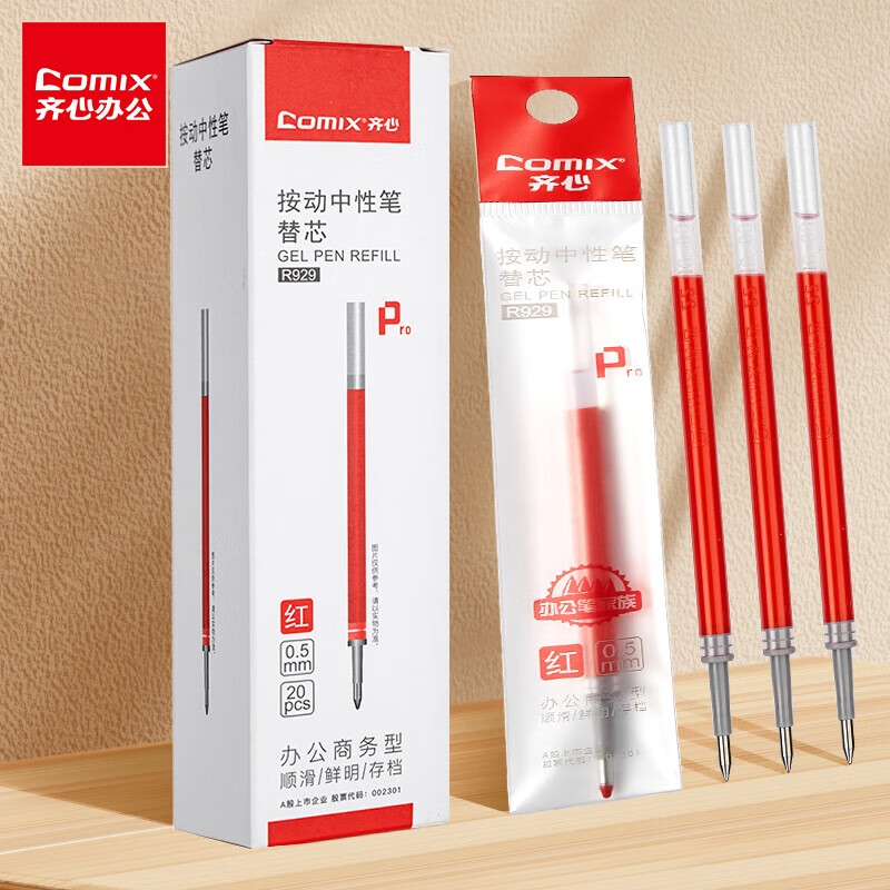 齐心(Comix)0.5mm子弹头按动中性笔芯 适用K35/GP108/EB35/S01 水笔签字笔替芯 R929 红色