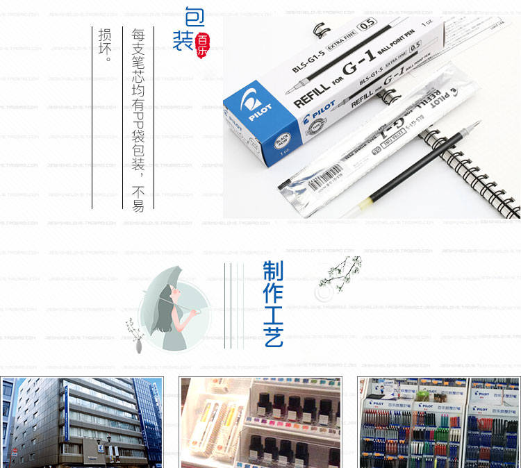 日本百乐(PILOT)BLS-G1-5笔芯 G-1中性水笔芯啫喱笔替芯 0.5mm 黑色
