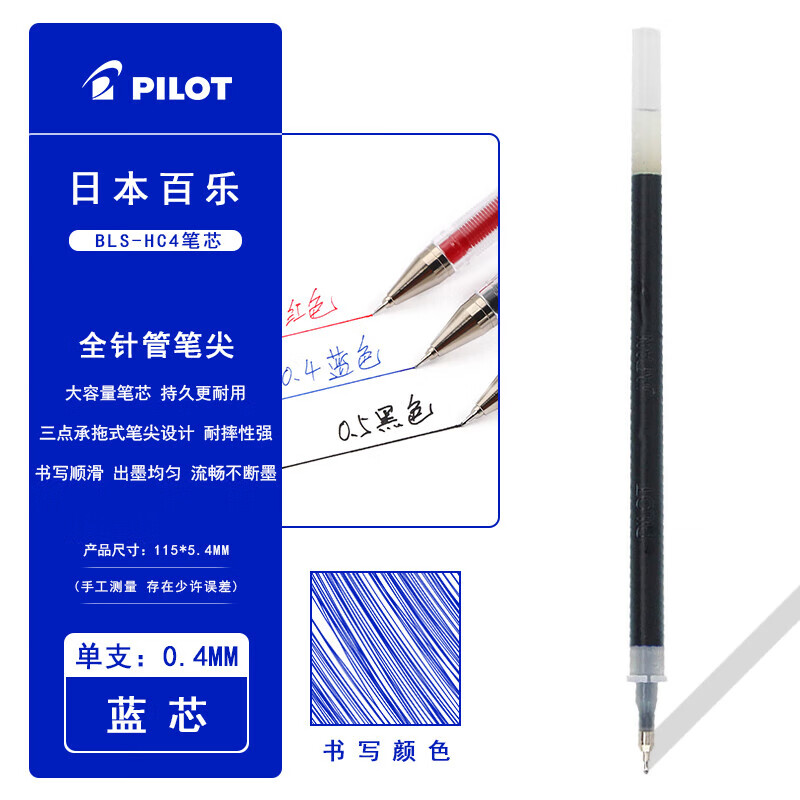 百乐(PILOT)HC4小针管笔芯0.4mm 蓝色