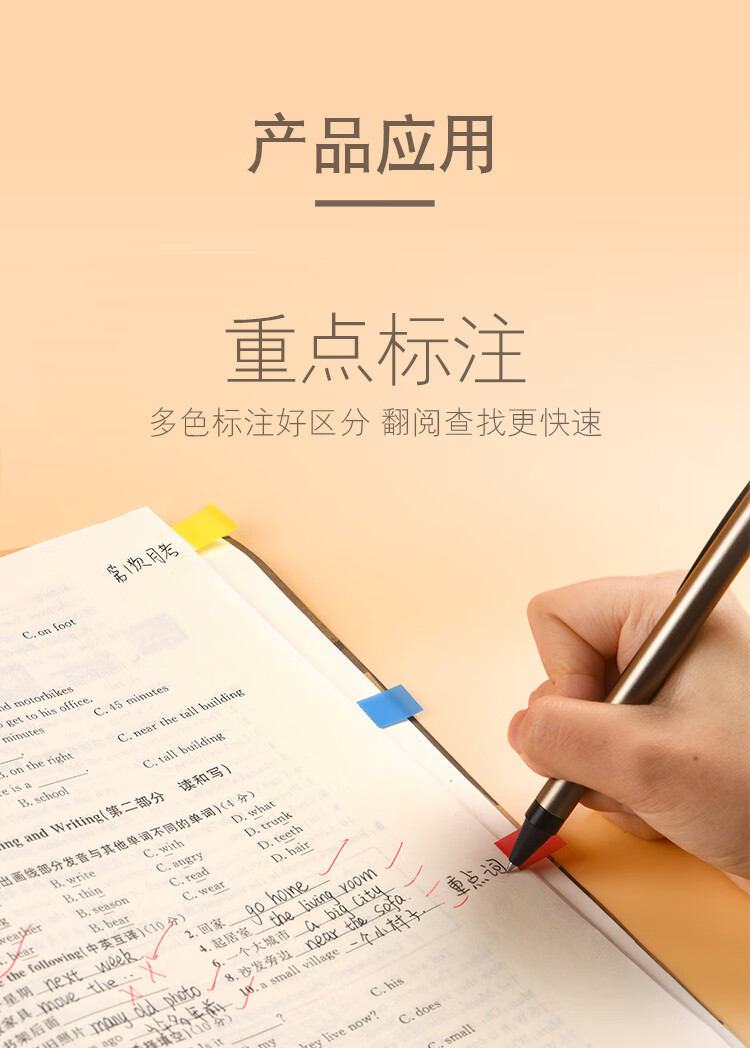 3M索引贴抽取标签彩色书签荧光标贴纸笔记本指示页码文件夹半透明小条防水彩色便贴学生用重点分类百事贴 683-5CF(5色装指示标签-100张)