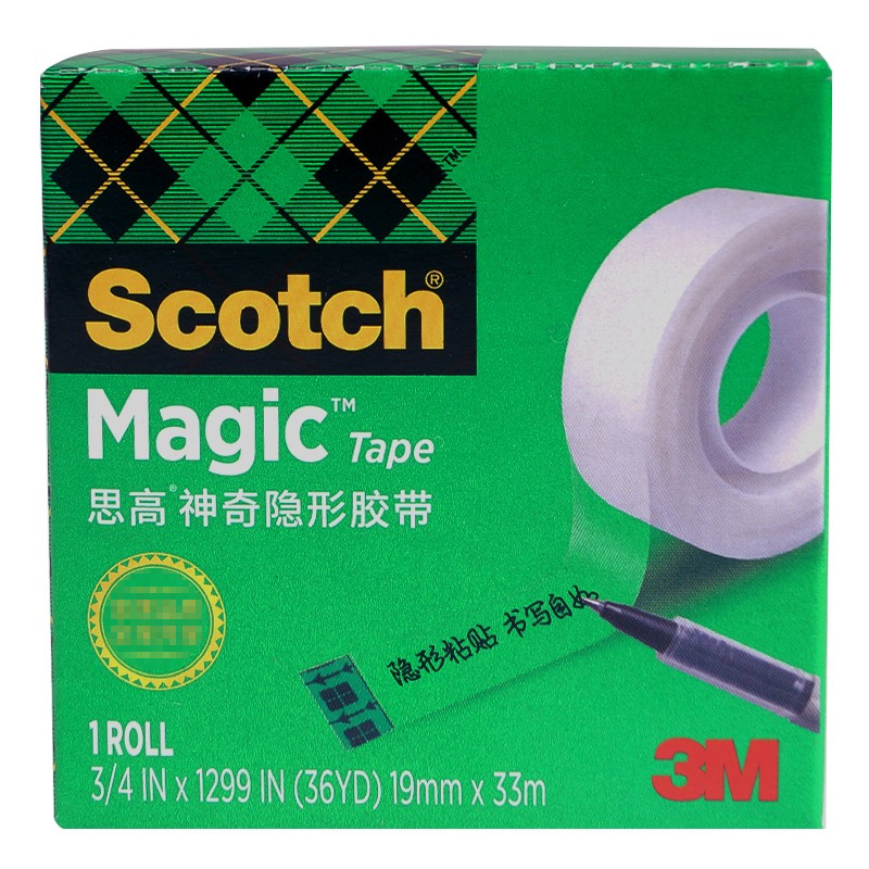 3M 思高 隐形胶带 磨砂透明神奇错题胶带 无痕隐形 可黏错题 办公用品 810-CQ33 19mm×25m 1卷
