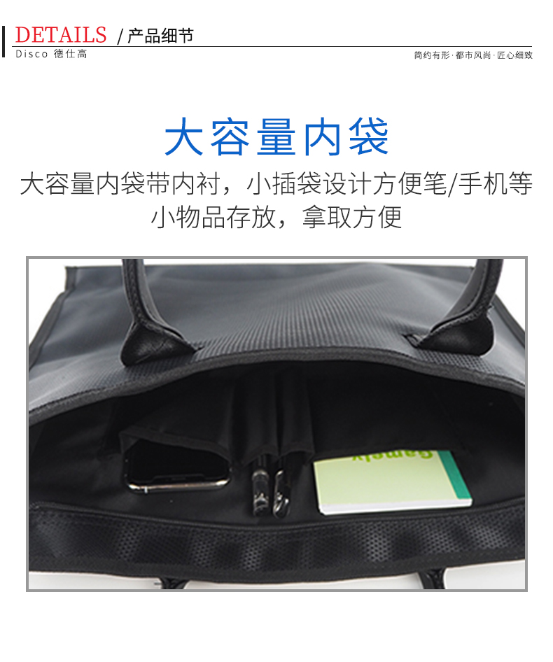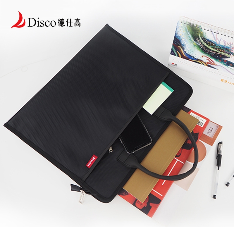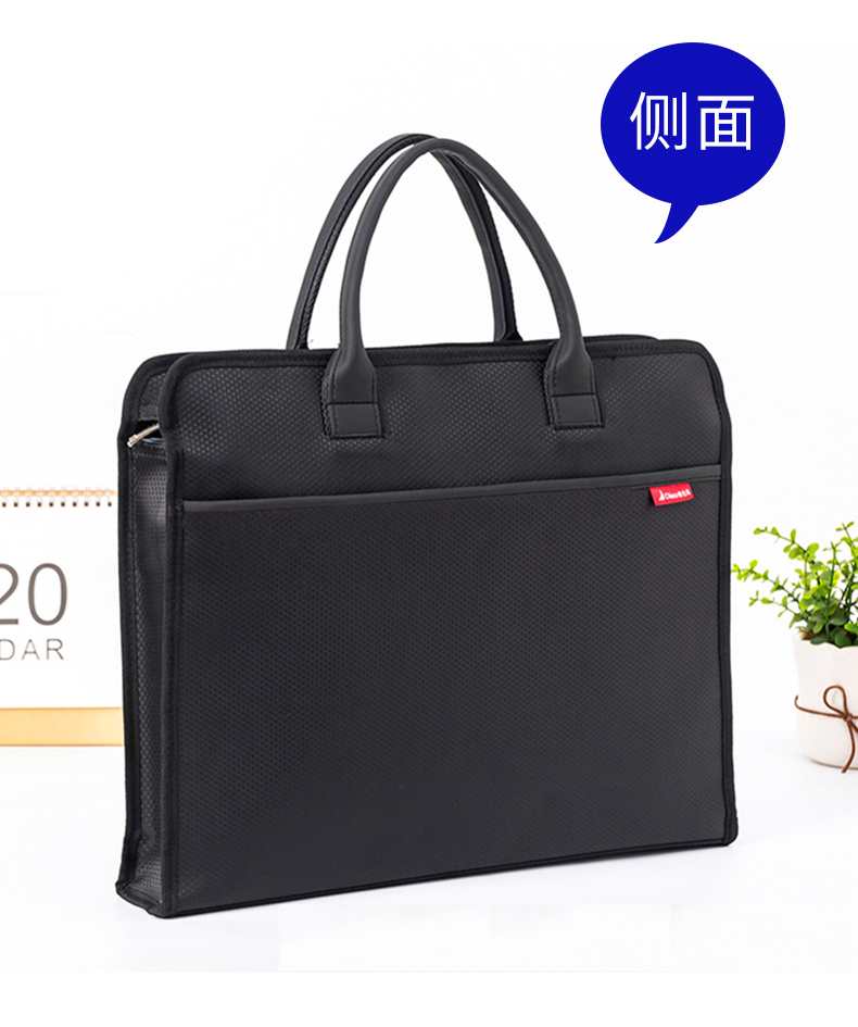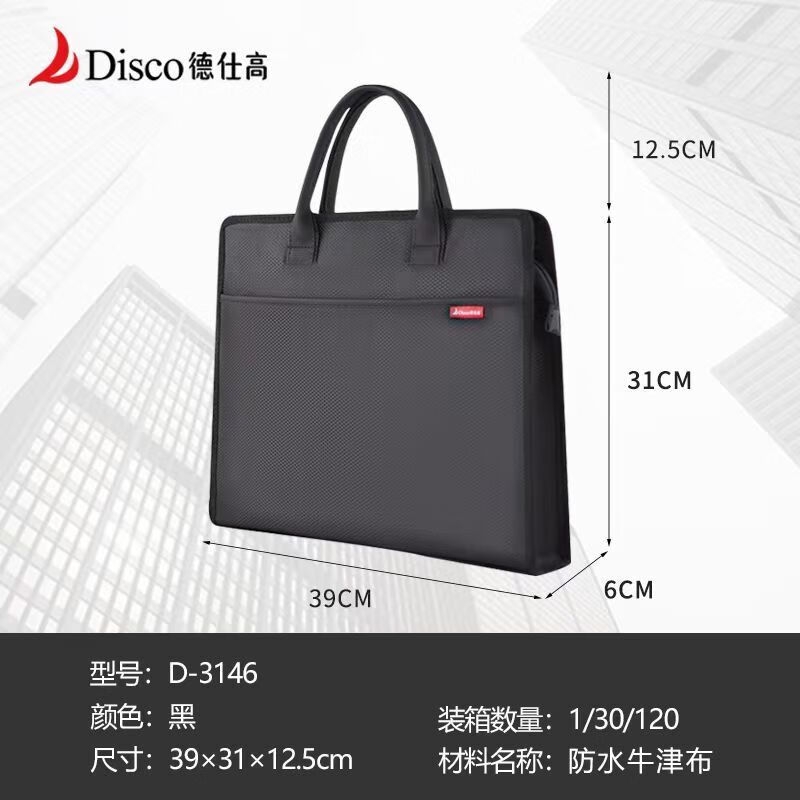 德仕高3146孔雀纹红条商务手提公文包 立体加宽 资料收纳包 会议袋 双层文件袋 印字 黑色(尺寸:385*315*60MM)