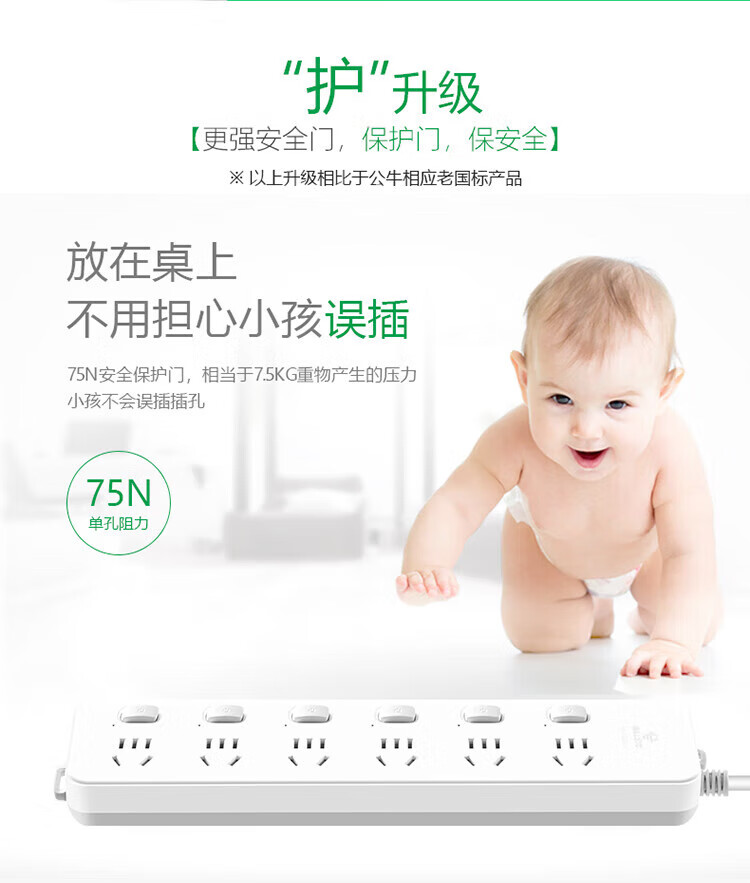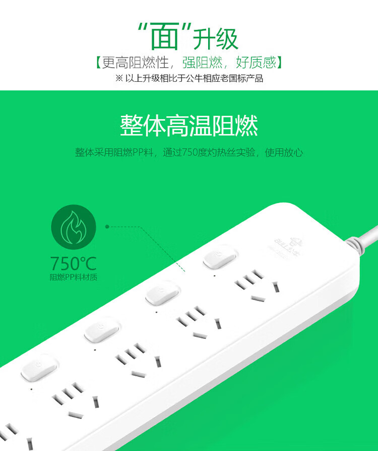 公牛(BULL)GN-313 插座/插线板/插排/排插/接线板/拖线板 6位分控全长3米 超功率保护插座