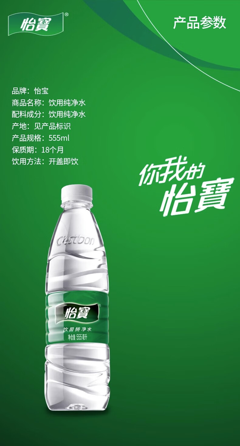 怡宝 饮用水 纯净水555ml*24瓶 整箱装