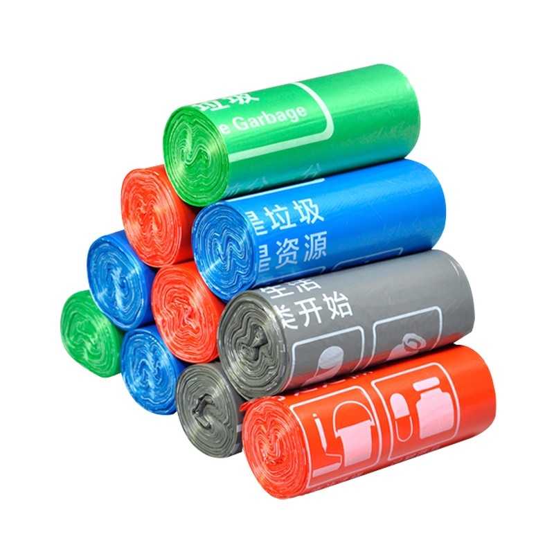 四色分类垃圾袋 可回收物其它厨余有害平口环保社区塑料袋分类垃圾袋(一包4卷) 45x50cm