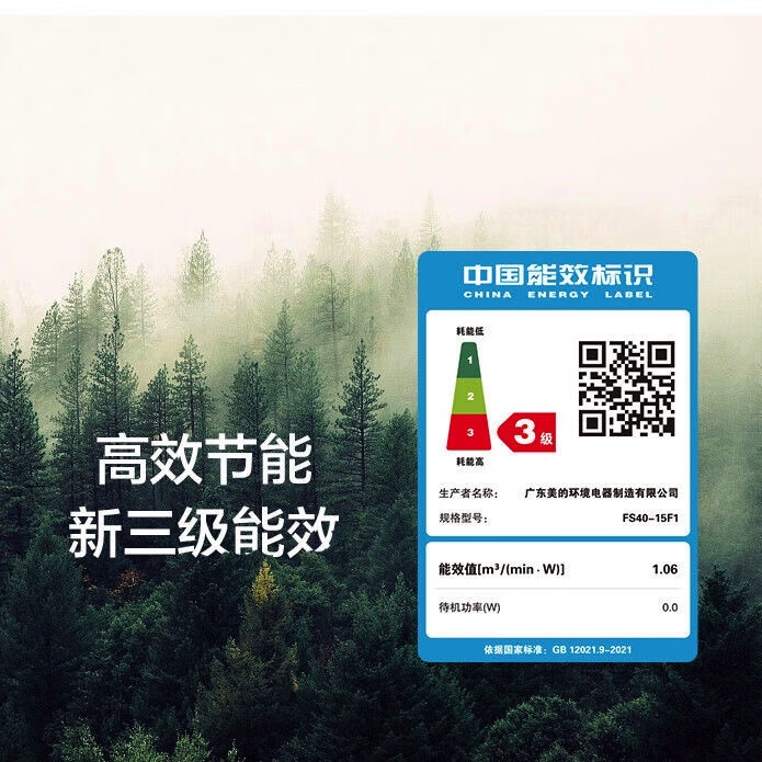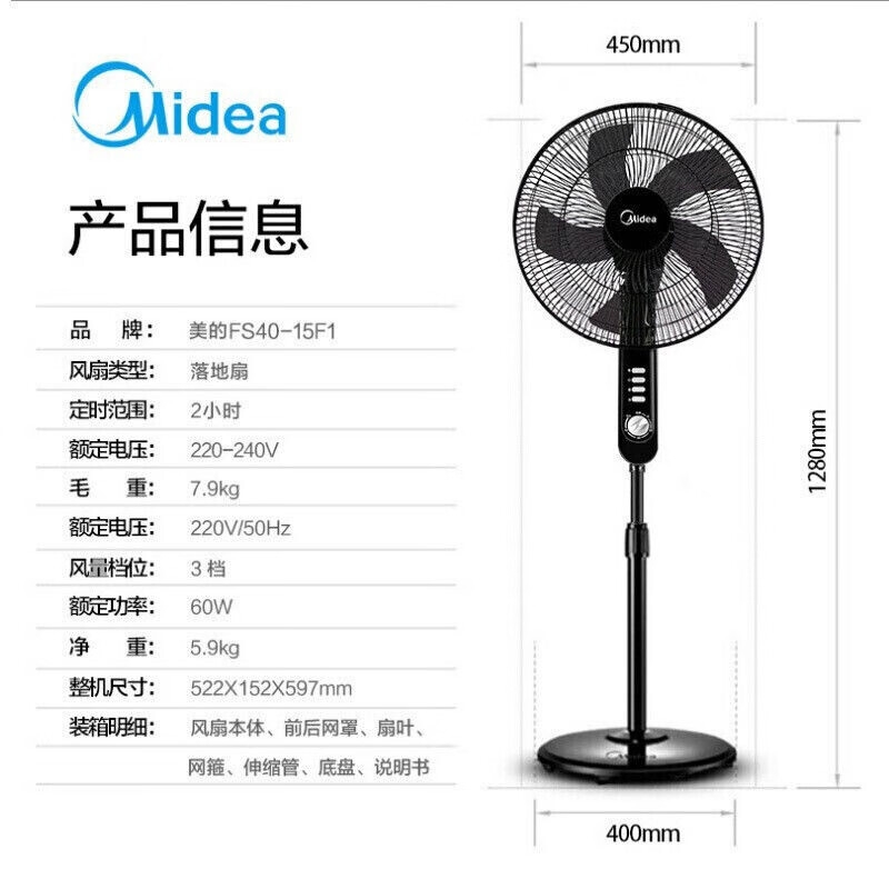 美的家用风扇落地扇FS40-15F1轻音定时立式电扇机械摇头节能电扇