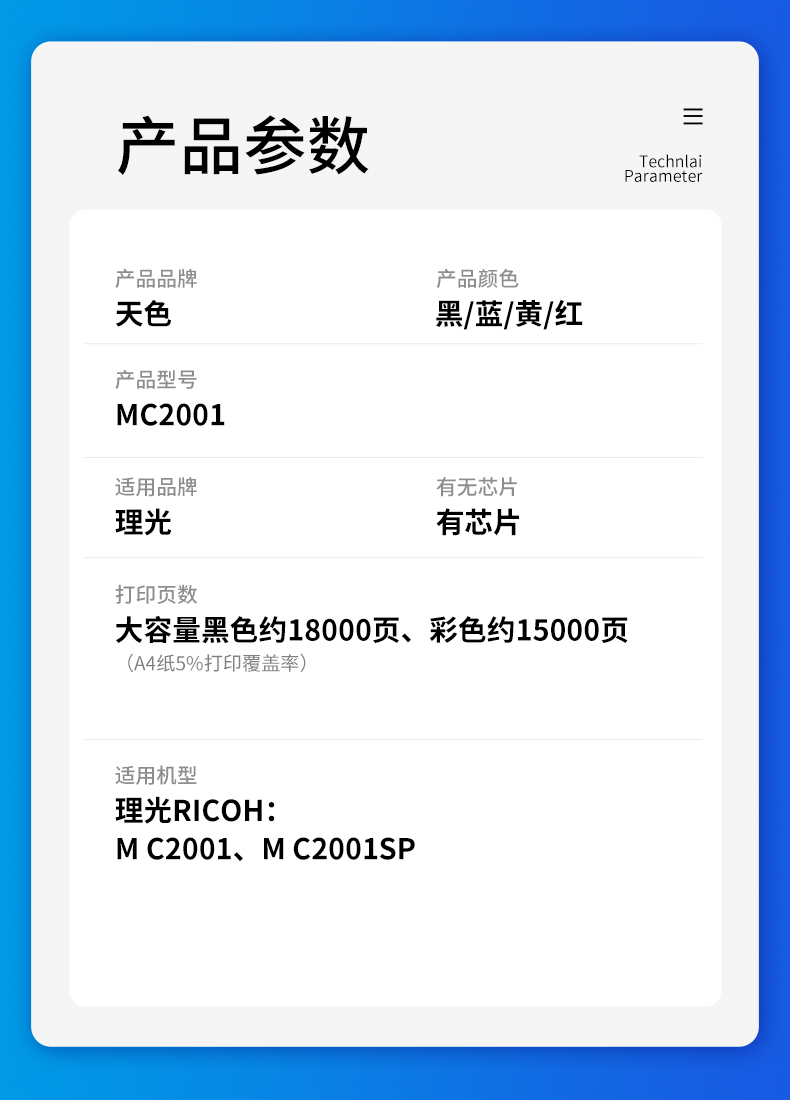 天色(18000页)M C2001黑色粉盒适用于理光M C2001ew墨粉盒打印机硒鼓粉盒墨盒C2001 MC2001大容量黑色