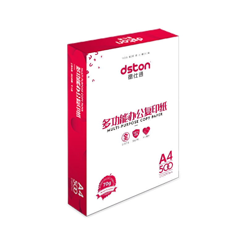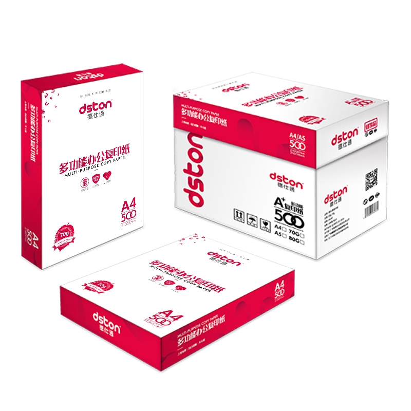 德仕通 5包红装A4/70g 复印纸打印纸 500张/包 白色 1包