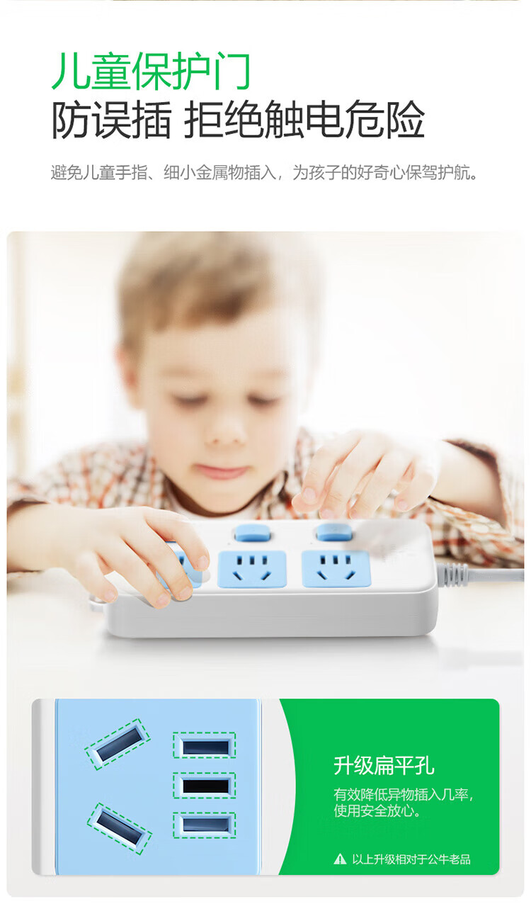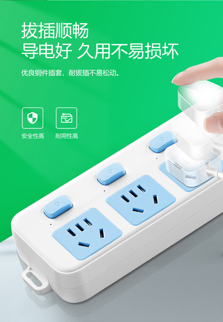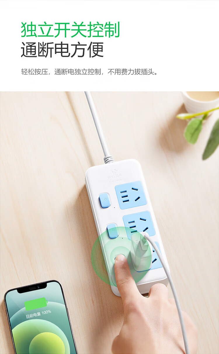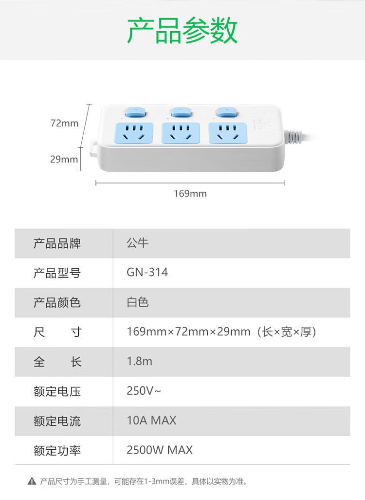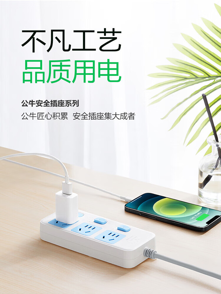 公牛(BULL)新国标插座/插线板/插排/排插/接线板/拖线板 3位分控全长3米 GN-314