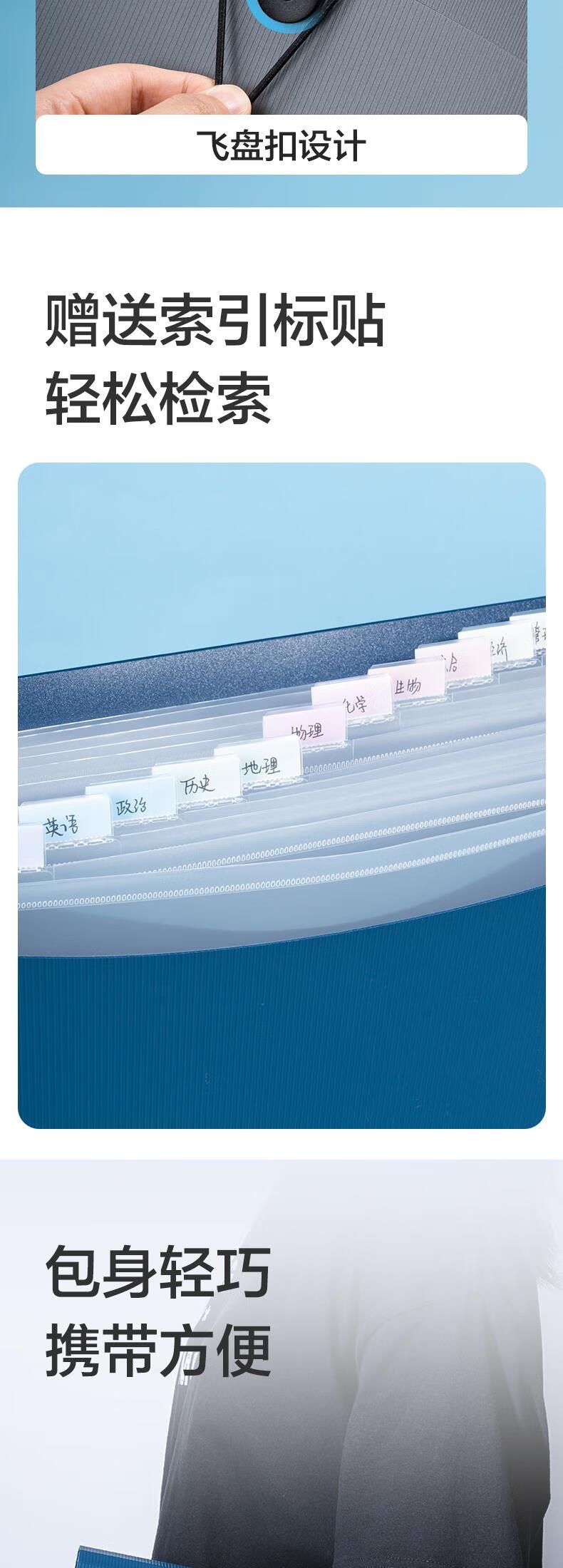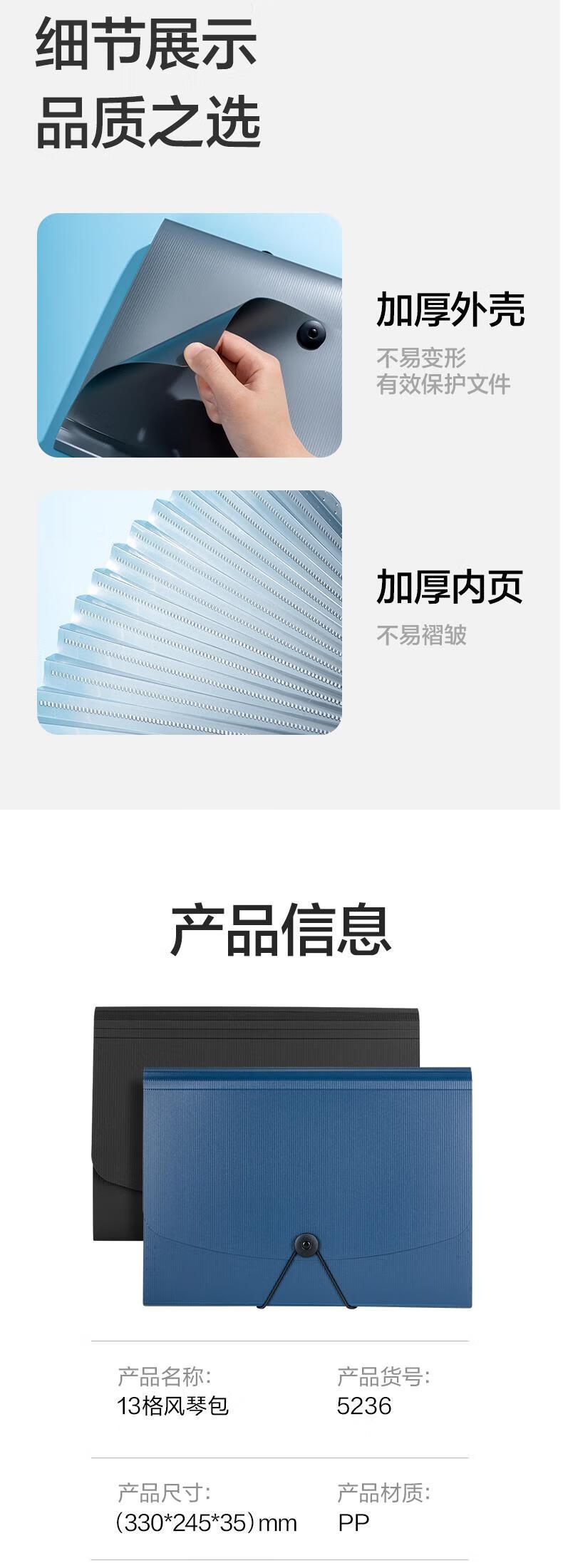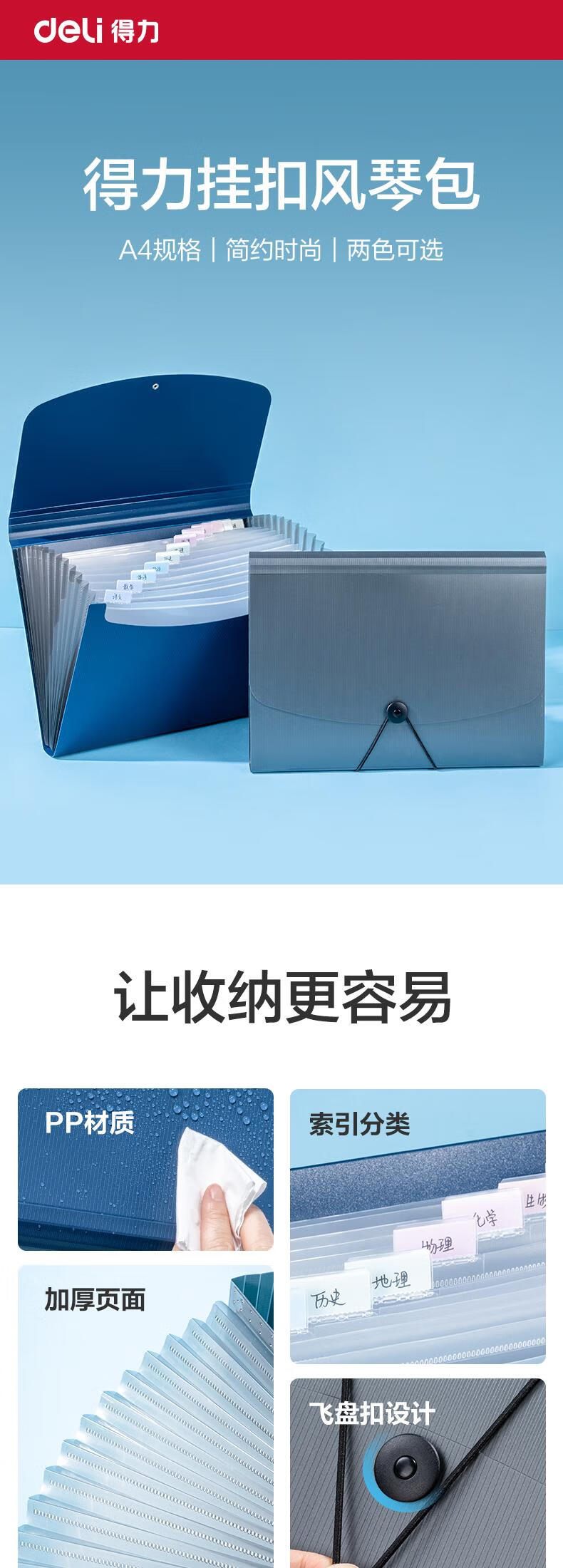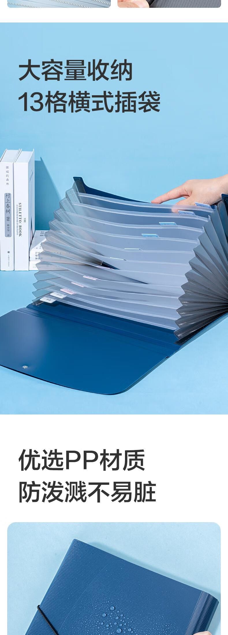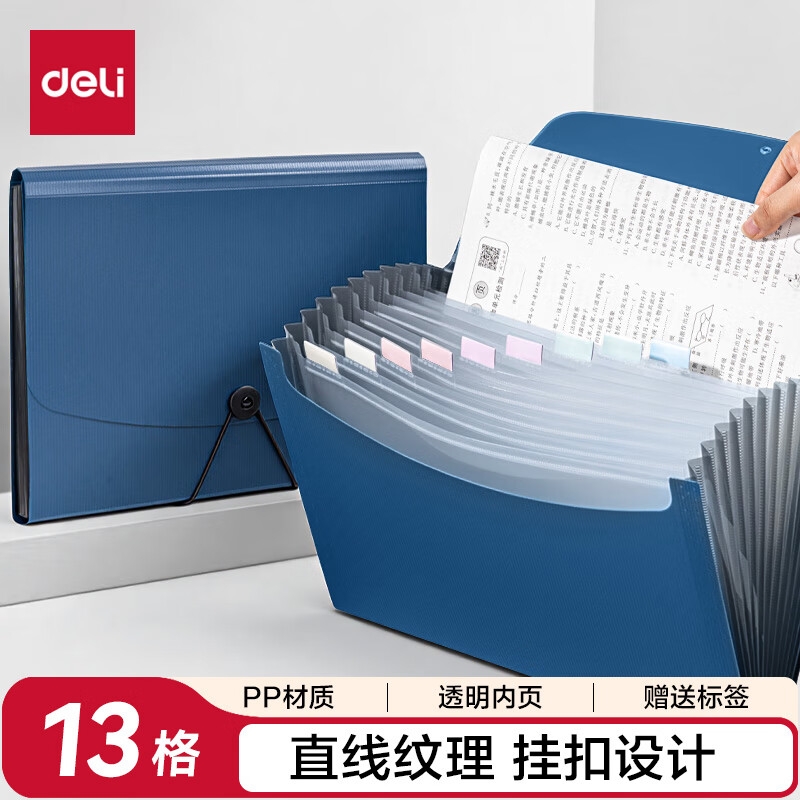 得力5236风琴文件包 A4 13格 蓝色