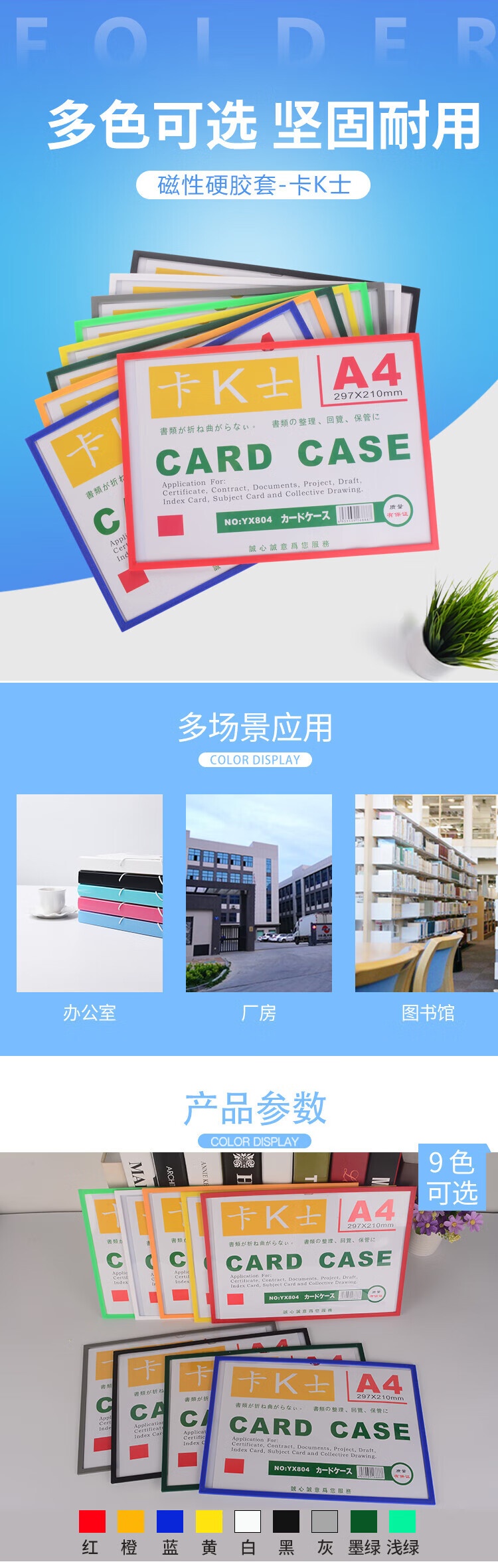 卡K士A4带磁胶套 蓝色