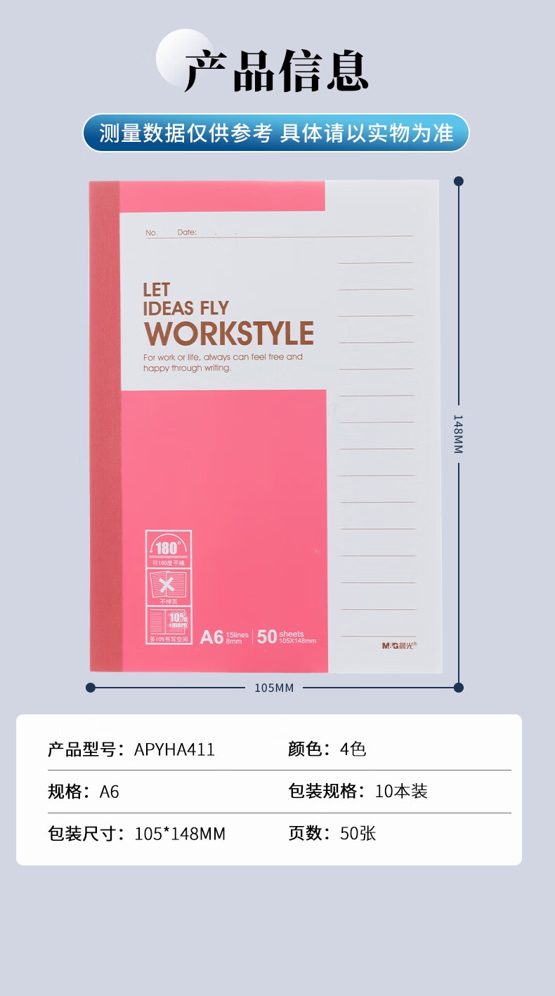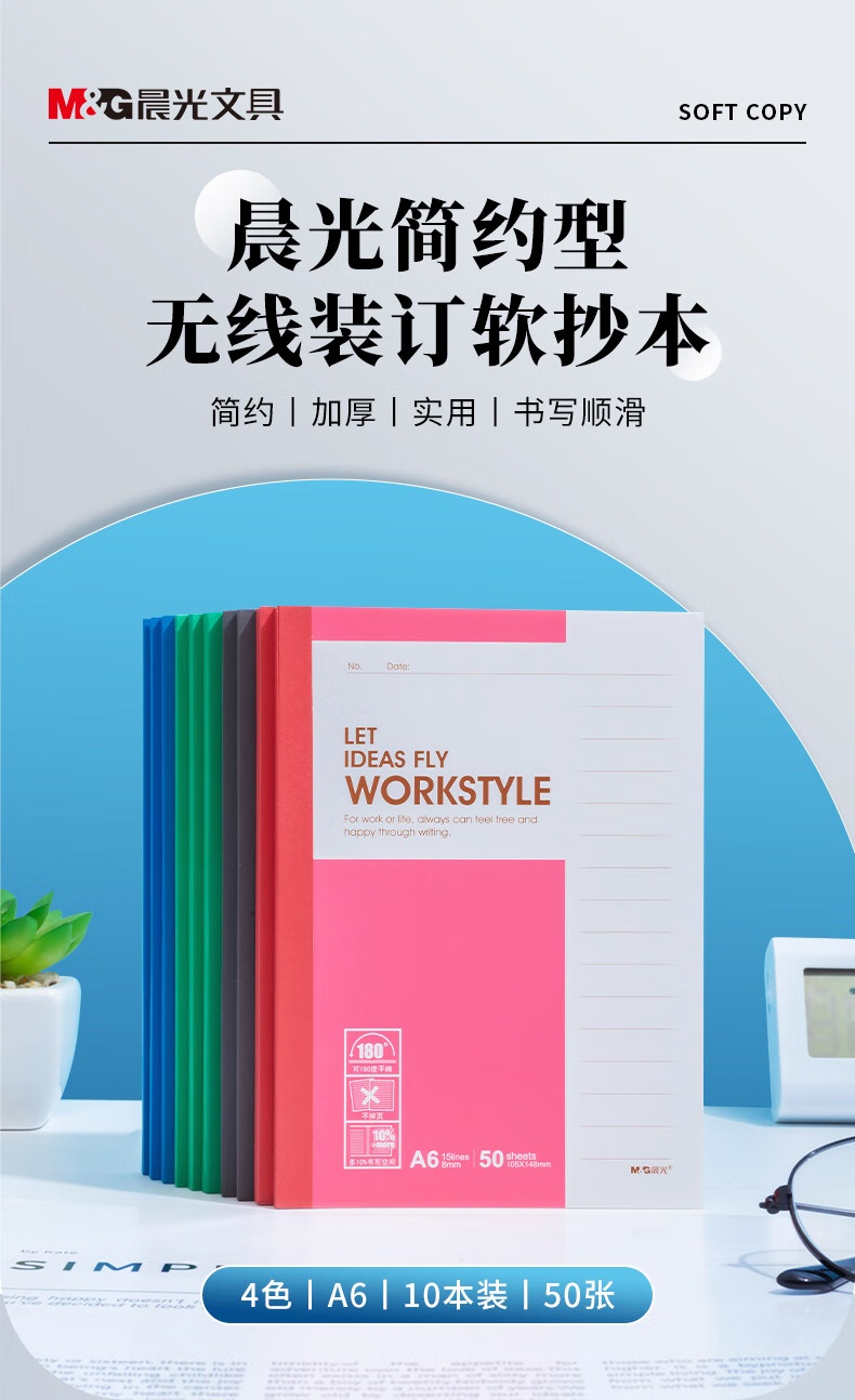 晨光 A6无线装订本 50页 笔记本 记事本 APYHA411 记录本 颜色随机 10本装