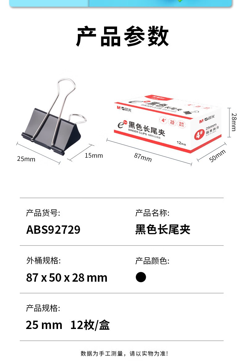 晨光 ABS92729 黑色长尾夹 4#25mm 金属票据夹 燕尾夹 12只/盒