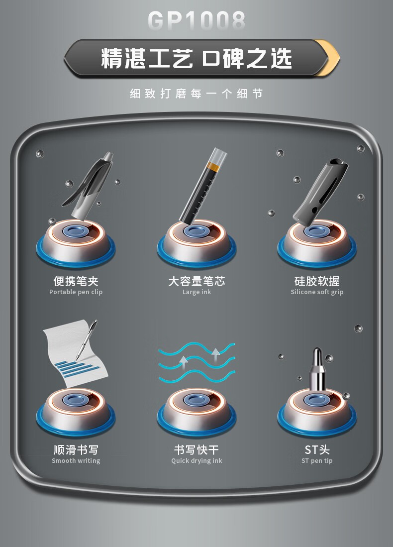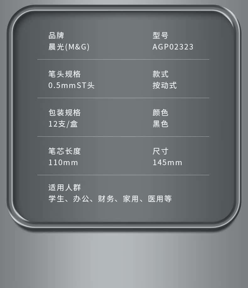 晨光(M&G)秒速干中性笔 AGP02323 黑色0.5mm 按动式st头 新升值细尖锥水笔 黑碳素签字笔 12支/盒