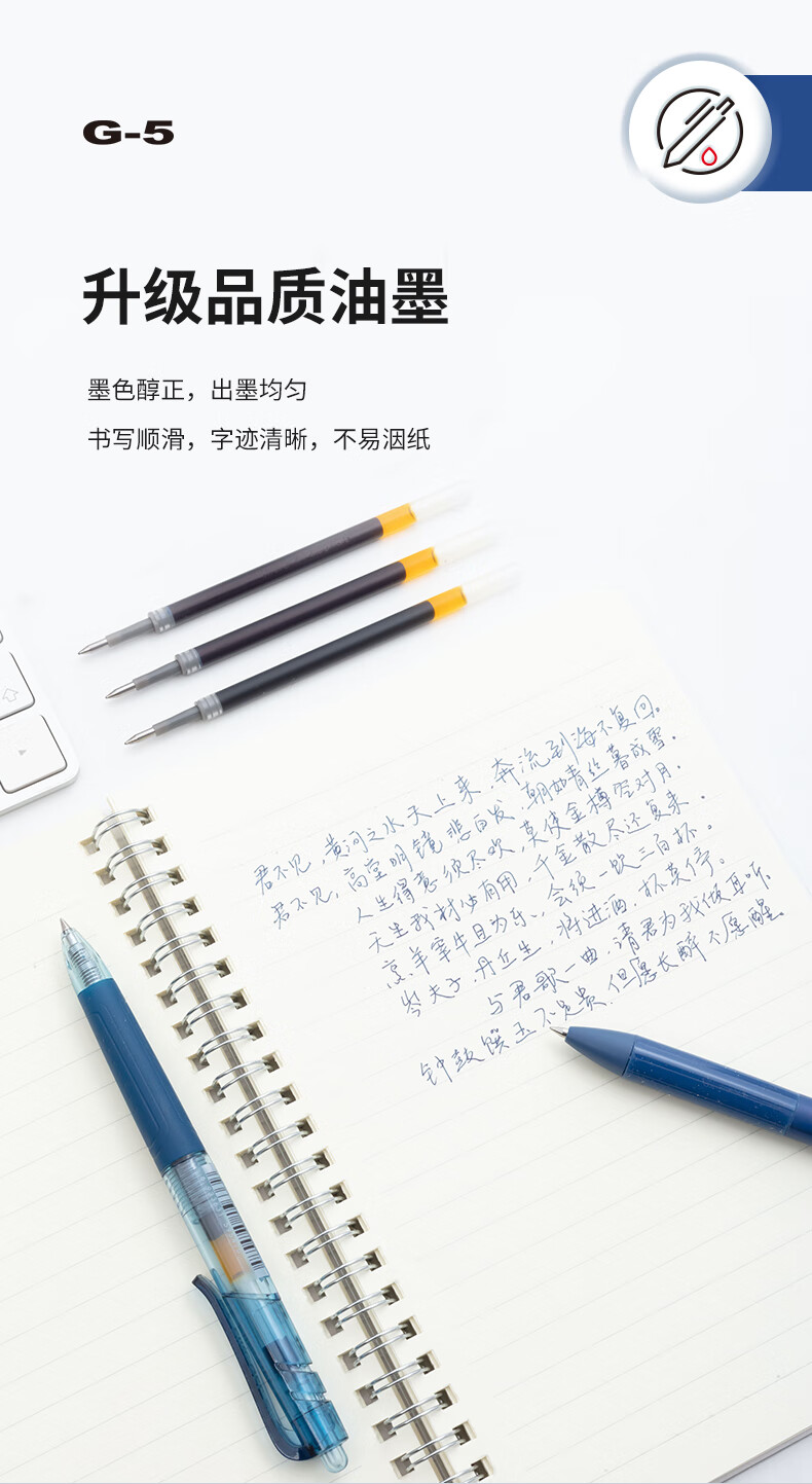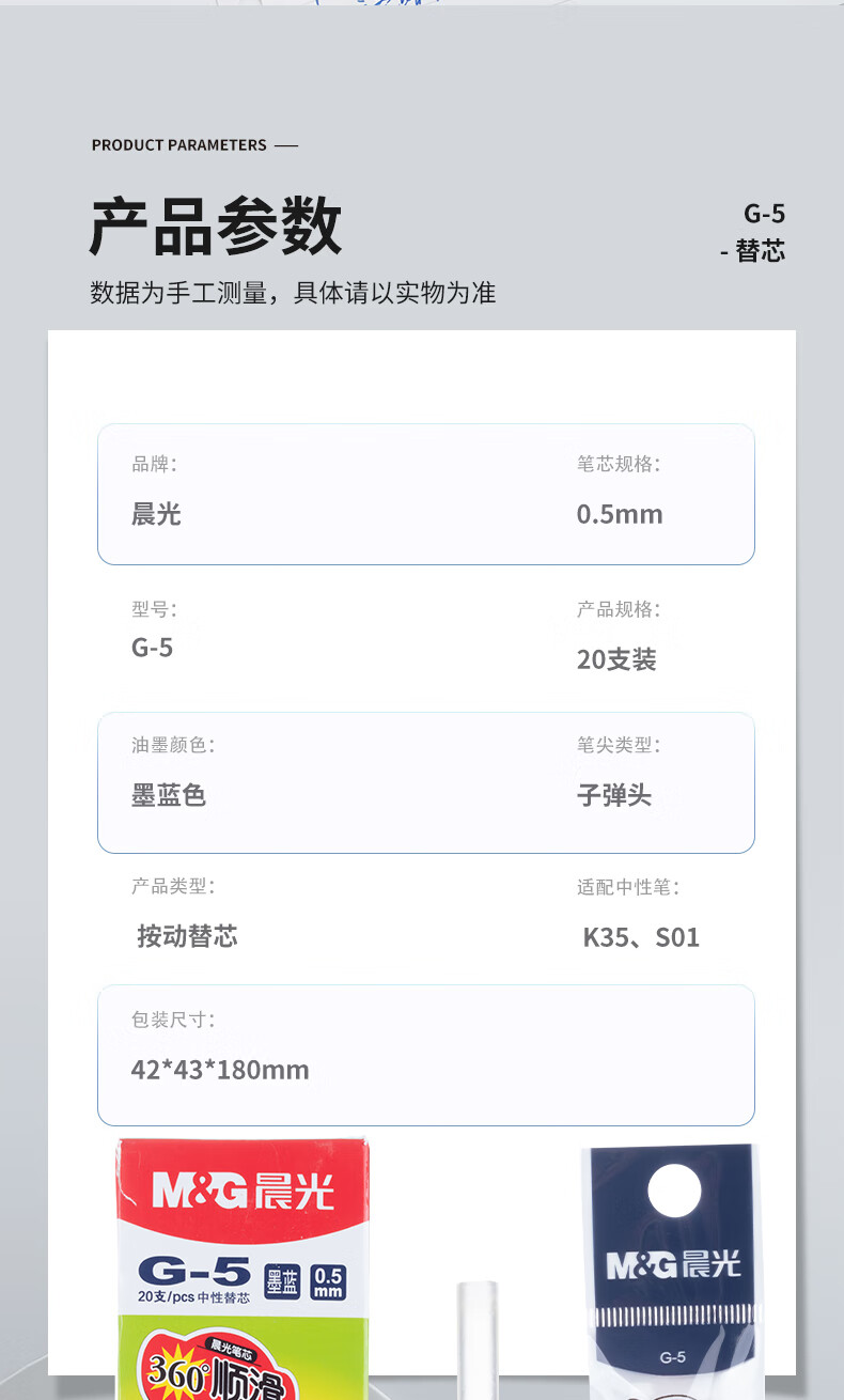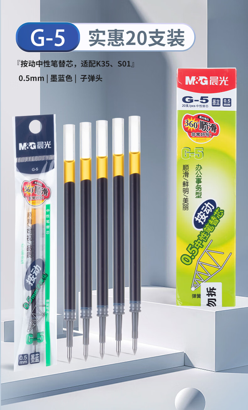 晨光(M&G) G-5墨蓝色0.5mm中性笔芯 按动子弹头签字笔替芯 (K35/S01/1008适用) 20支