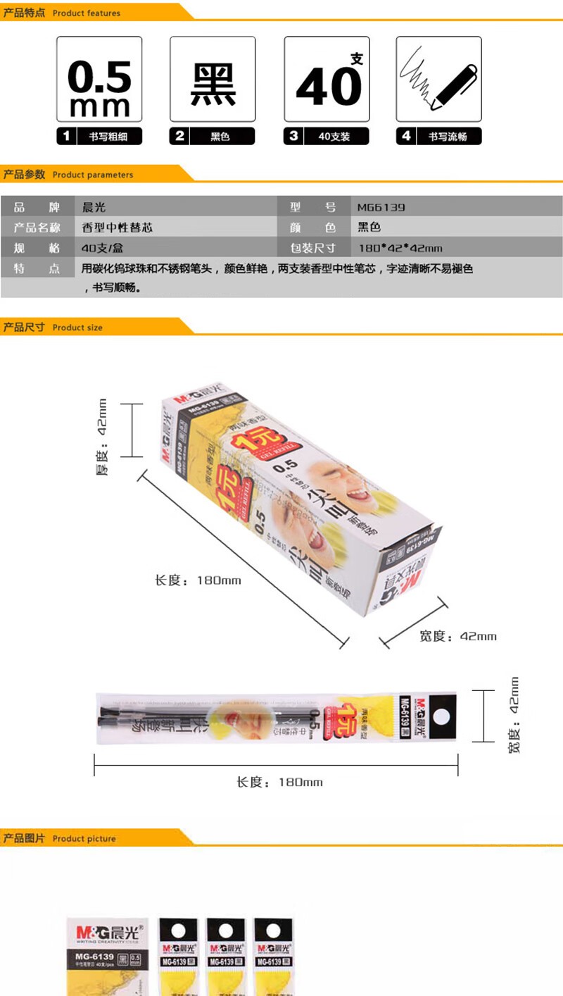 晨光MG-6139 中性笔芯 0.5mm 签字笔替芯(黑色)40支