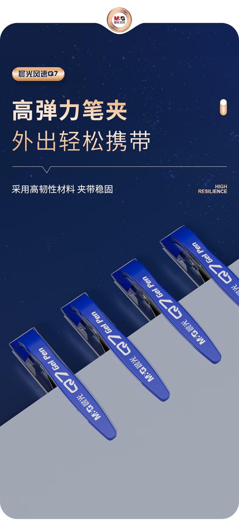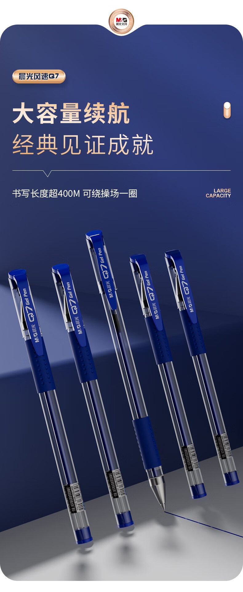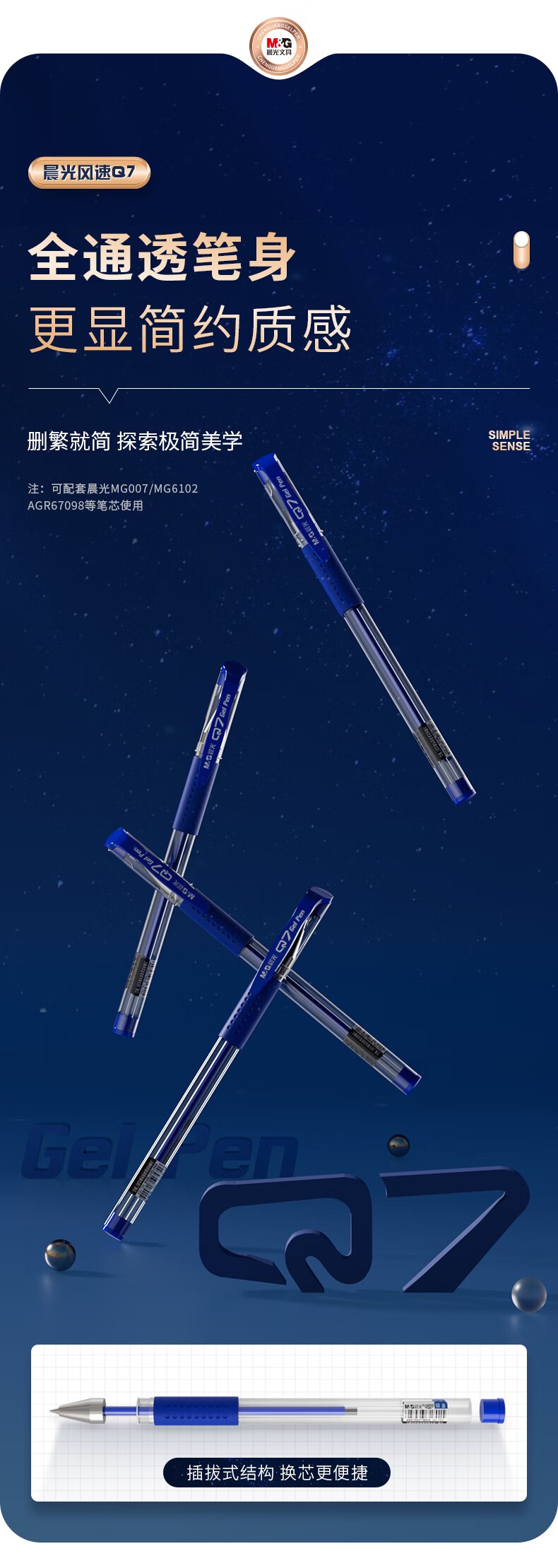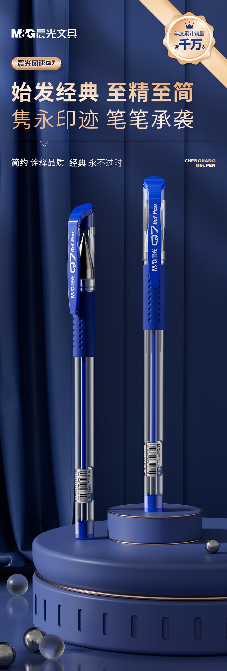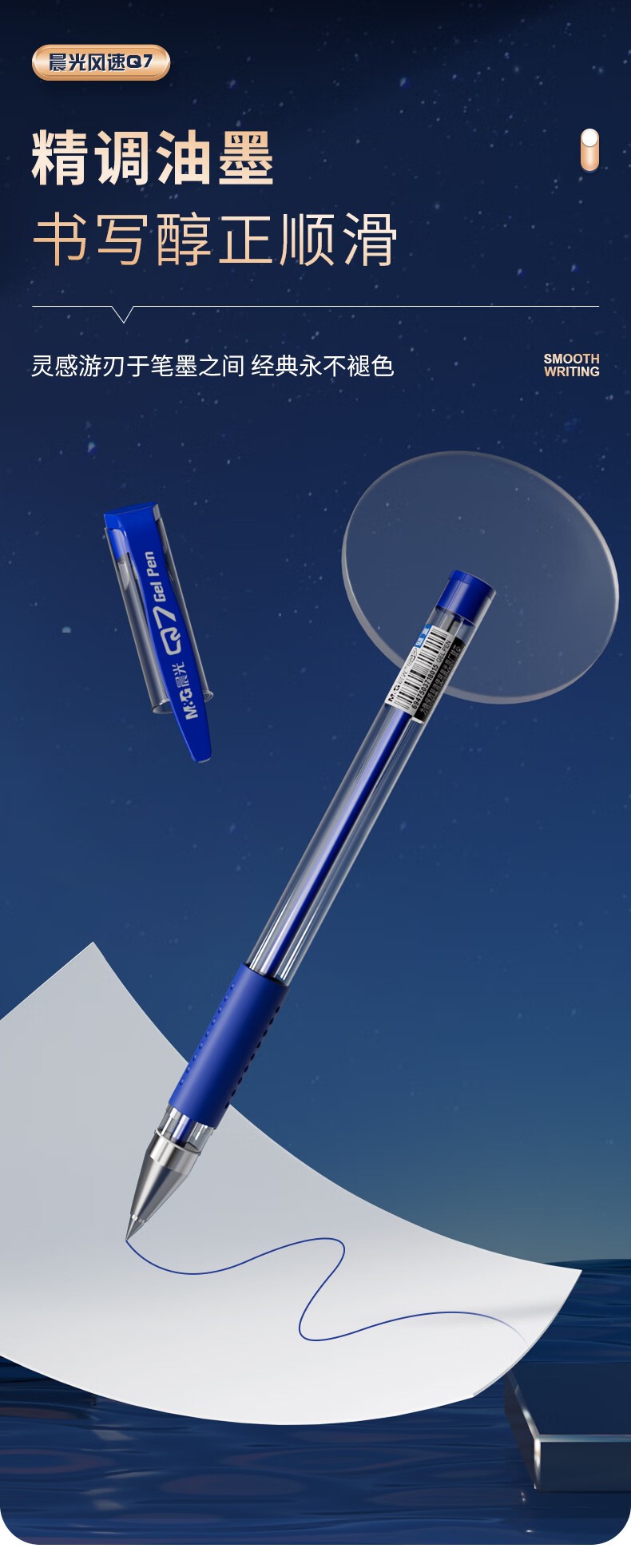 晨光 Q7 拔帽中性笔 0.5mm 签字笔 子弹头水笔 蓝色 12支/盒